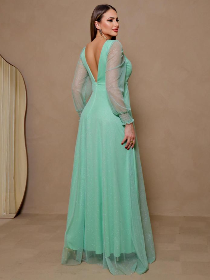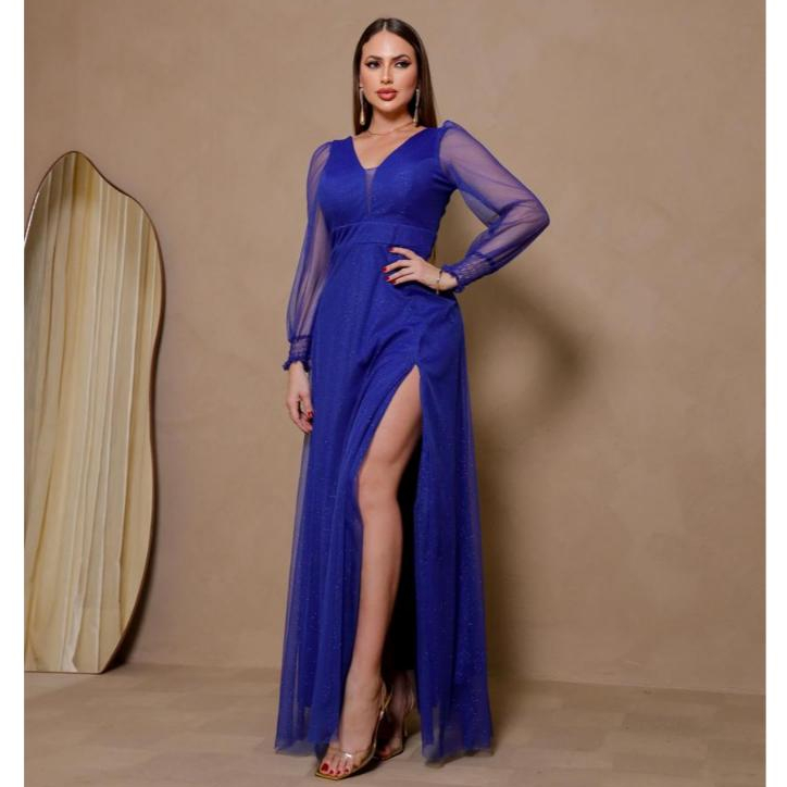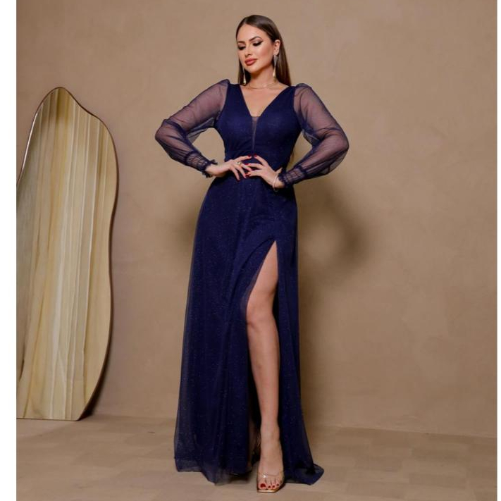 Vestido de festa longo manga longa para madrinha,casamento,formatura e luxo com fesda e brilho
