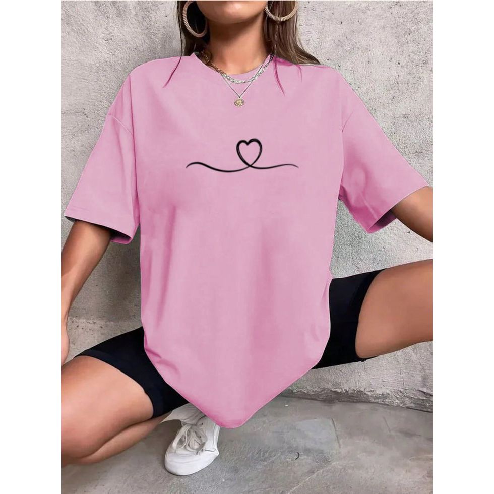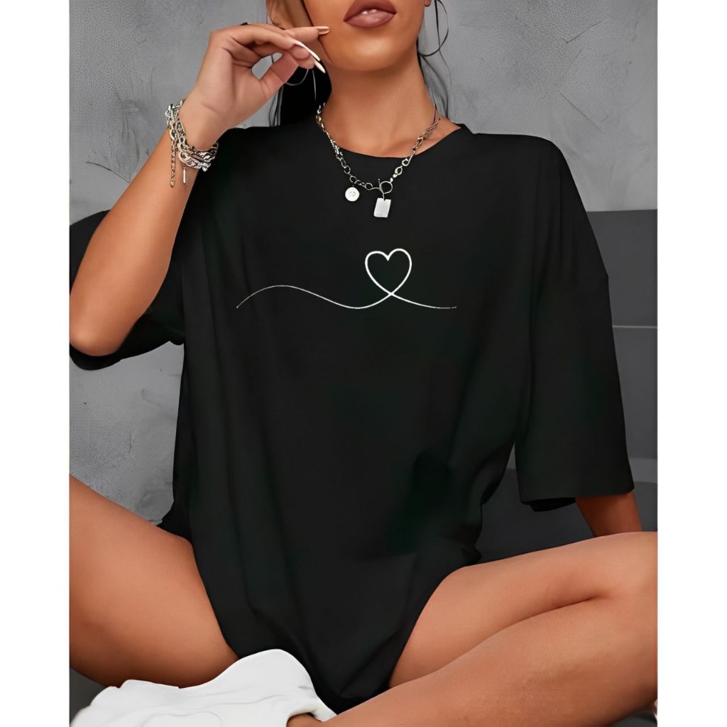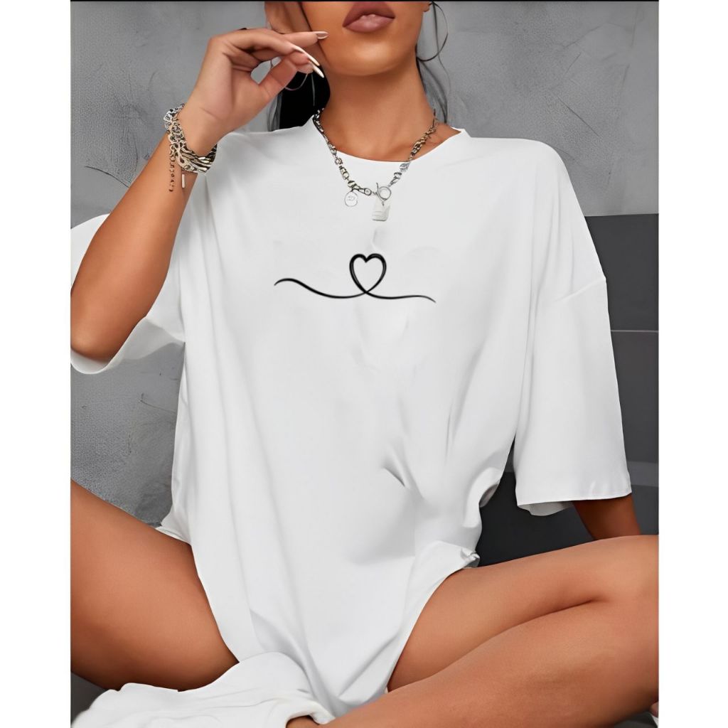 Camiseta Tshirt Oversized 100%Algodão Feminina Gym Treino Academia Fitness Musculação coraçao onda