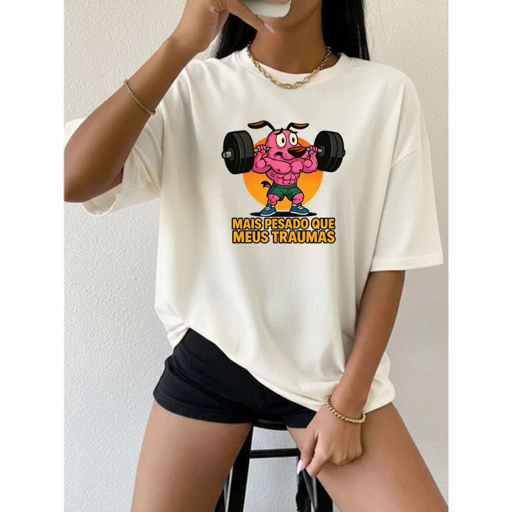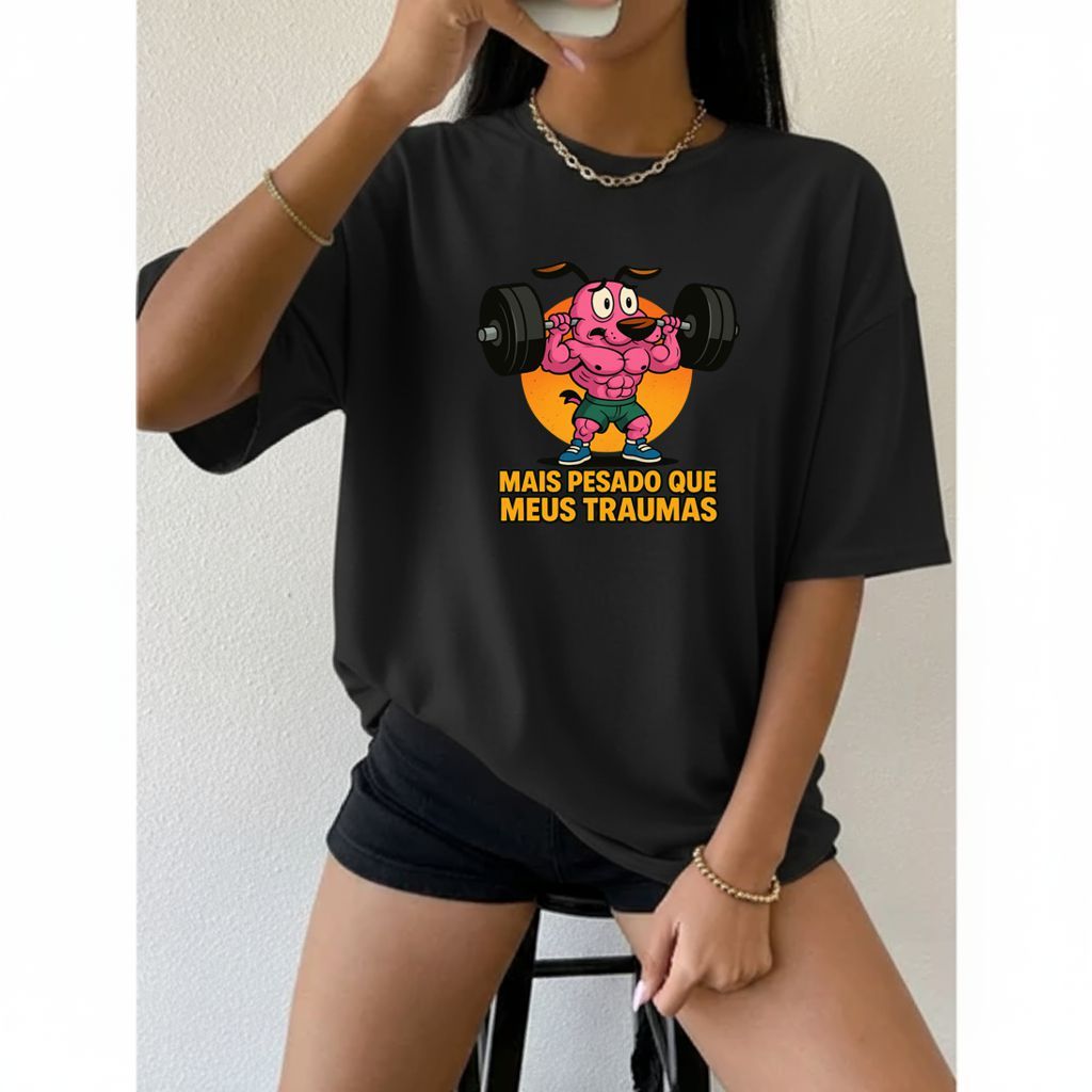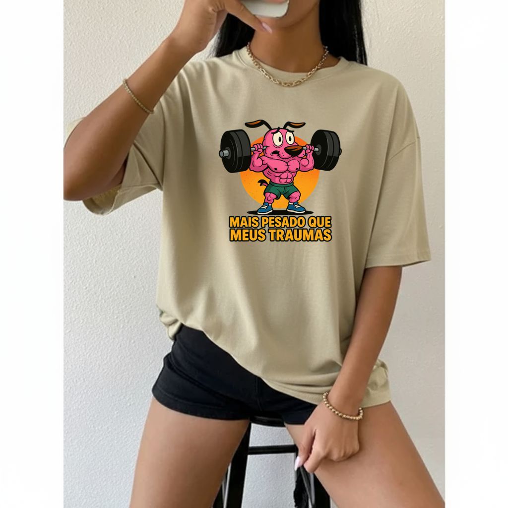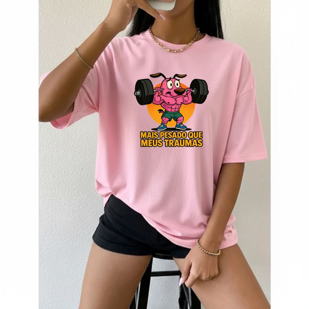 Camiseta Tshirt Oversized 100%Algodão Feminina Gym Treino Academia Fitness Musculação coragem cao