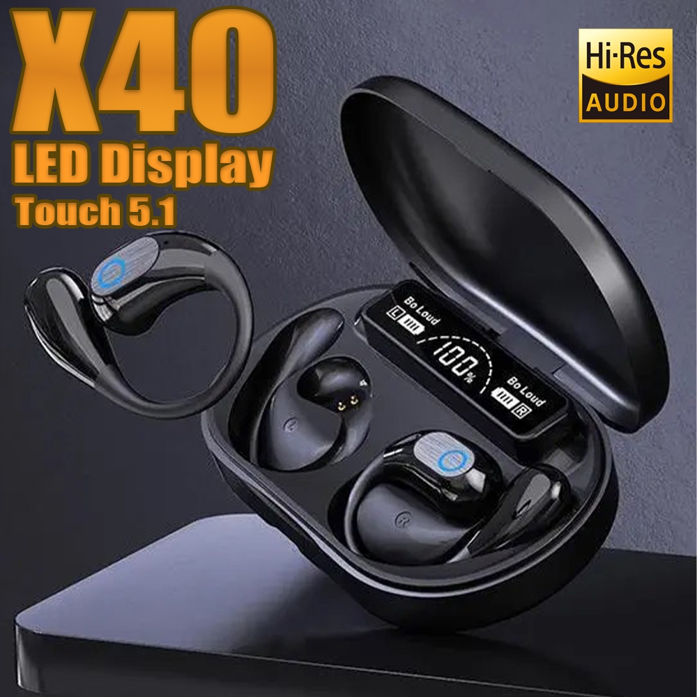 2026 X40 Fones de ouvido Bluetooth TWS esportivos com clipe LED Display Touch 5.1 Hi res