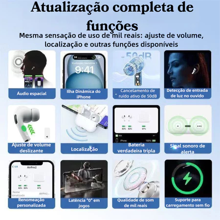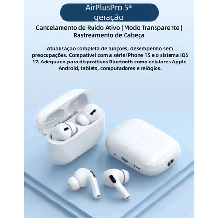 Airpods PRO 5 Com Cancelamento De Ruído Fone de Ouvido Sem Fio Bluetooth Pop-Up para iOS e Android