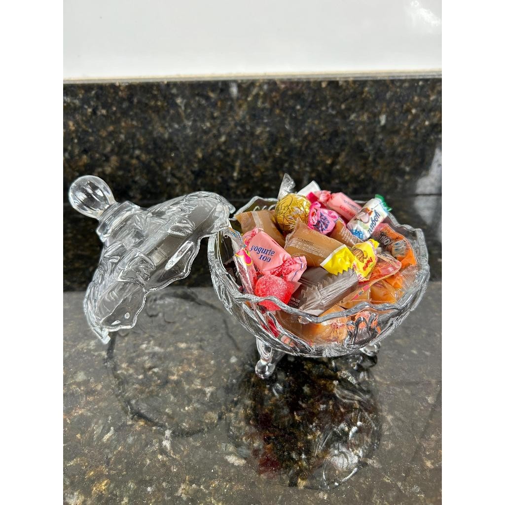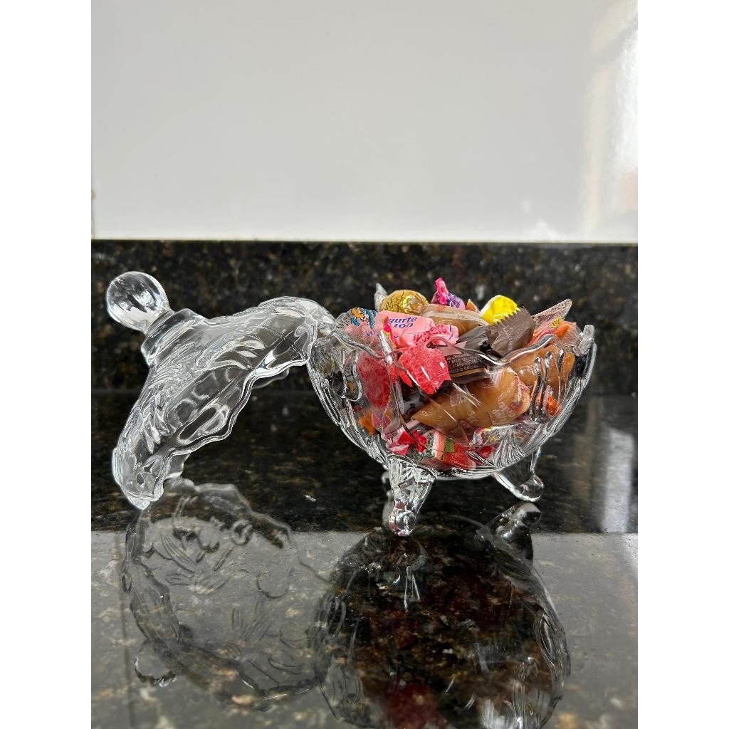 BOMBONIERE BALEIRO DE VIDRO COM PÉZINHO POTICHE PORTA DOCES PREMIUM