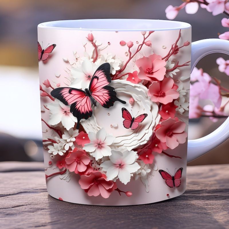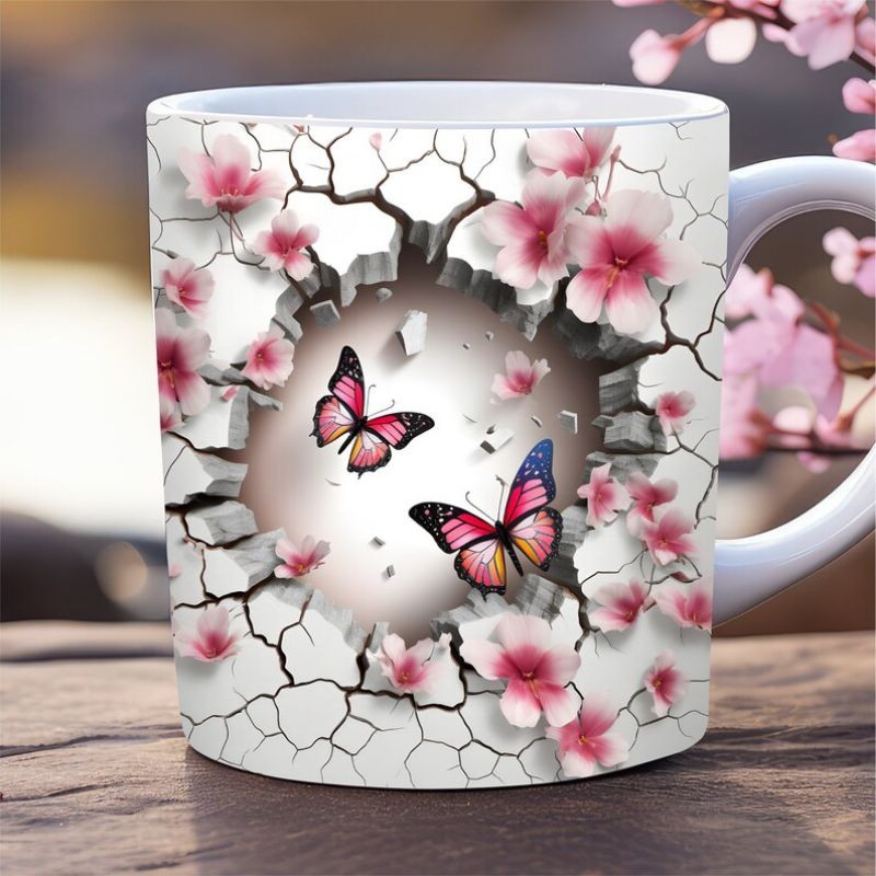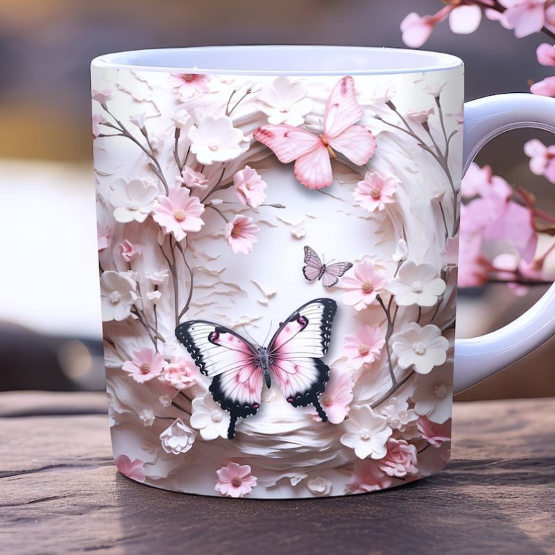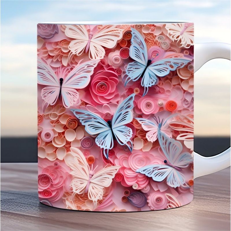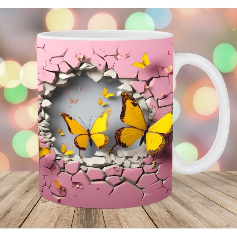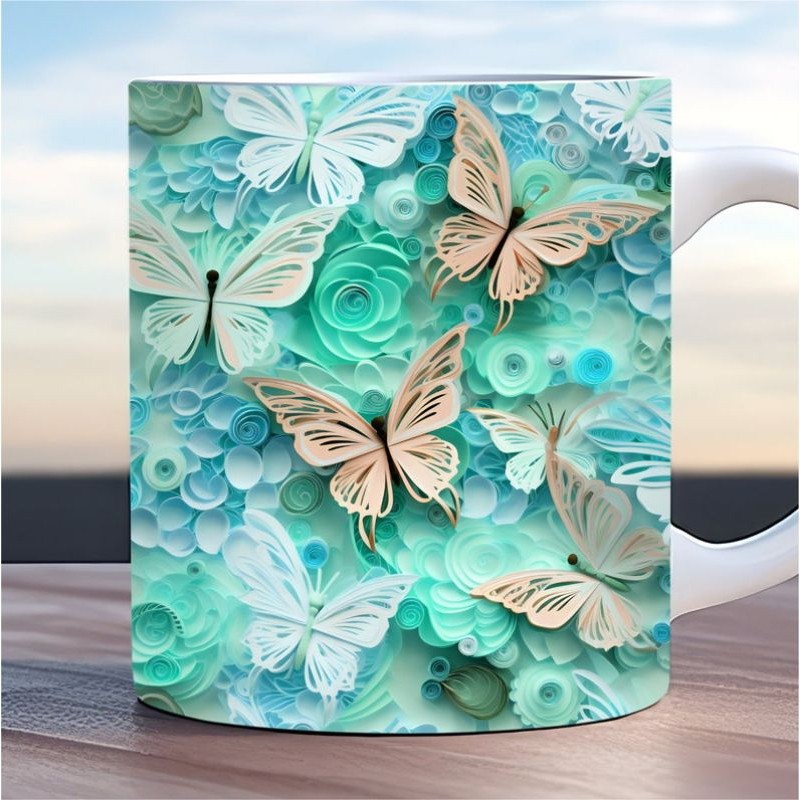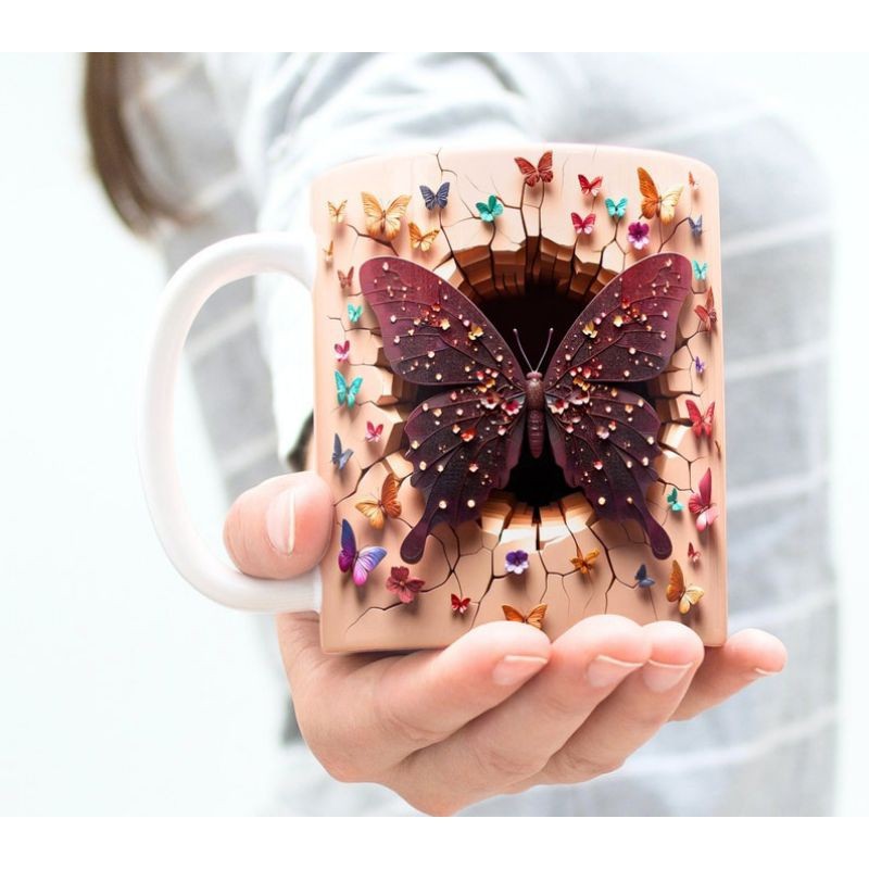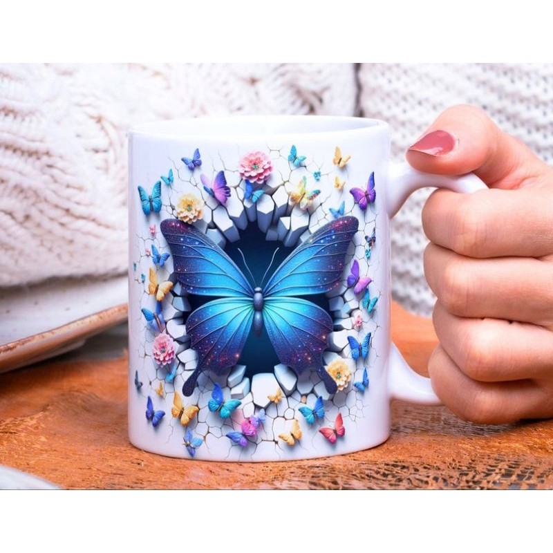 Caneca personalizada arte 3d borboleta butterfly caneca de porcelana 325 ml presente amigo amiga Pascoa