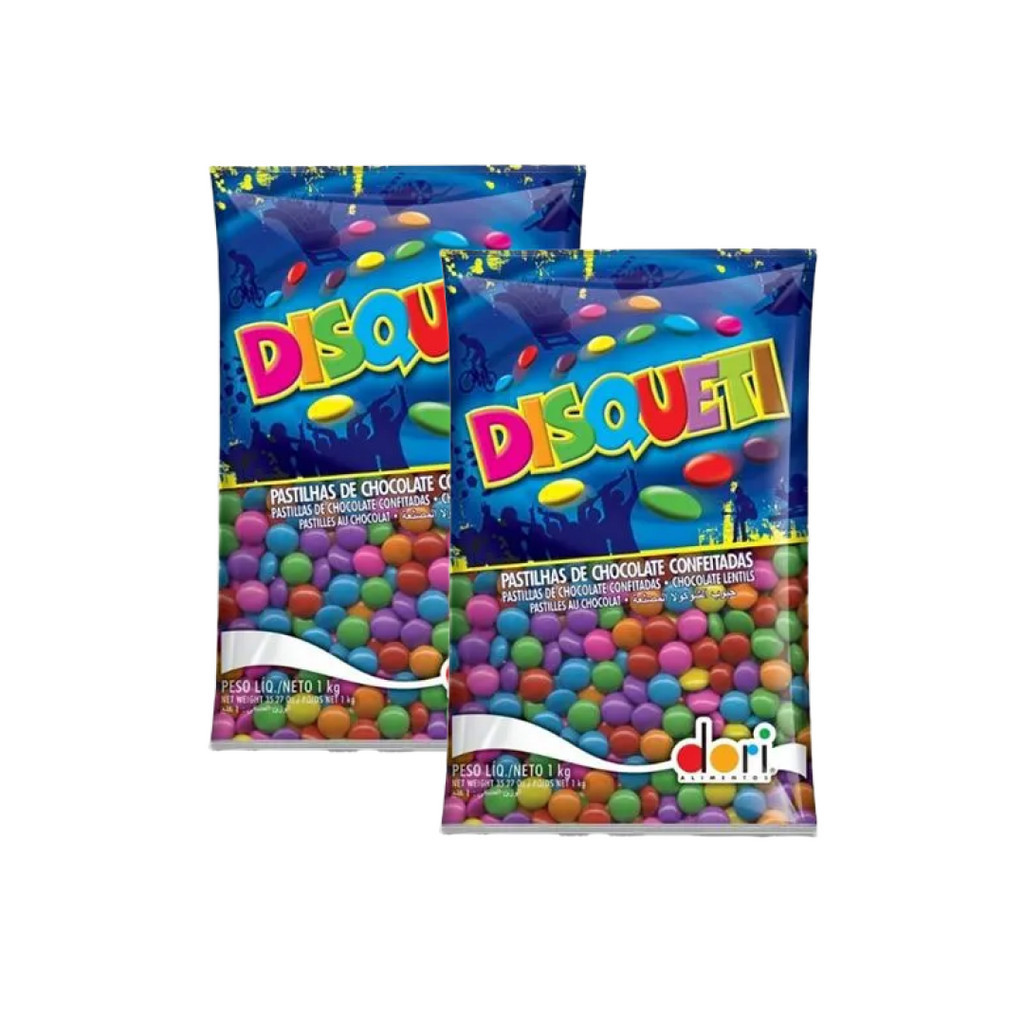 Disqueti Confeitos de Chocolate Dori contendo 2 unidades de 1kg