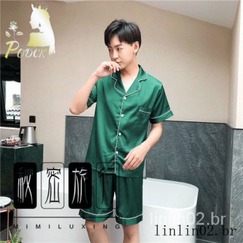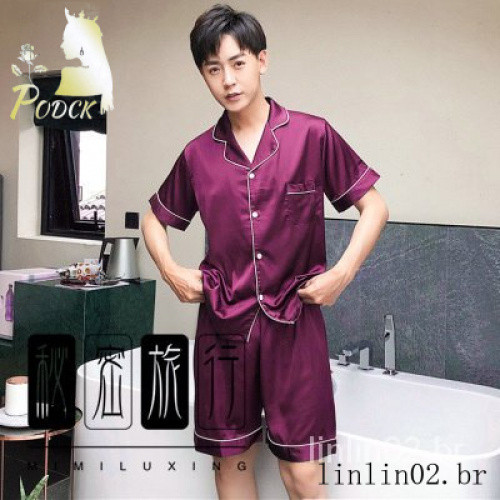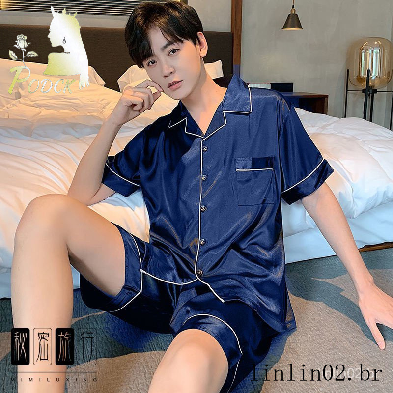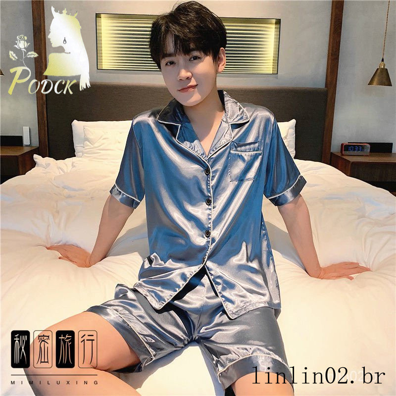 M-5XL pijama masculino moda pijama terno adulto conjunto de seda homens para dormir