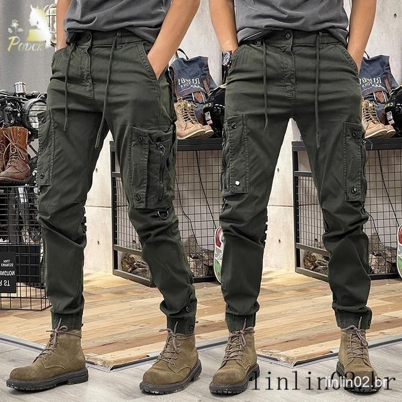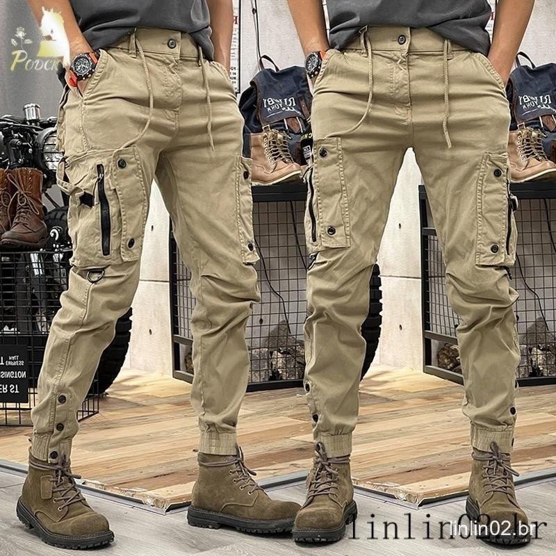 Calças de Trabalho Masculinas Estilo Americano Plus Size Roupas Casuais Funcionais Táticas Retas