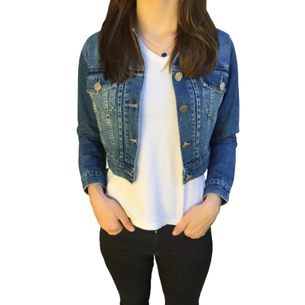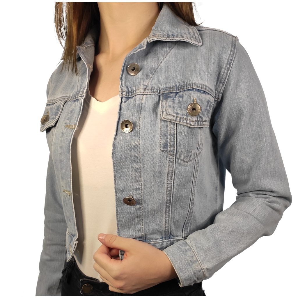 Jaqueta Jeans Curta Feminina Premium Azul Escuro e Claro