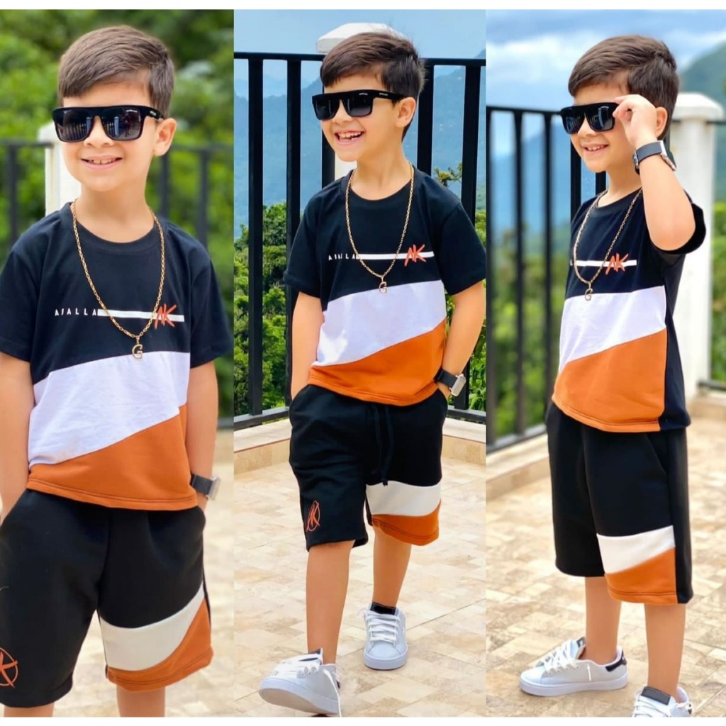 Conjunto Infantil 2 Peças Camisa + Bermuda Menino Juvenil Novidade