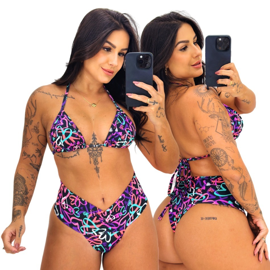 Biquíni Efeito Lipo Cortininha Calcinha Levanta Bumbum Modelo Cintura Alta Novidade