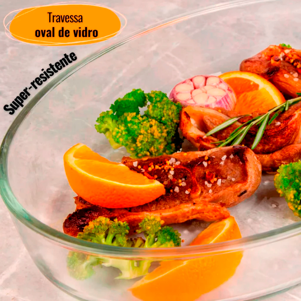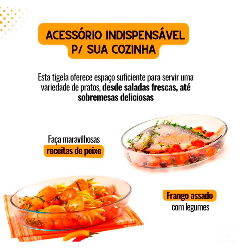 Assadeiras Oval Marinex 4L 2,4L Forma Vidro Resistente Lasanheira Grande Média Anti Risco Gourmet