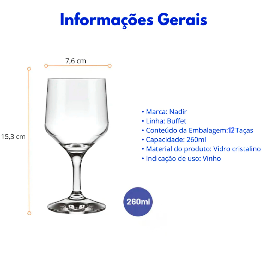 Jogo Kit 04/06/12 Taças Vidro Buffet 260ML Vinho Água Suave Grande Eventos Restaurante Hotel