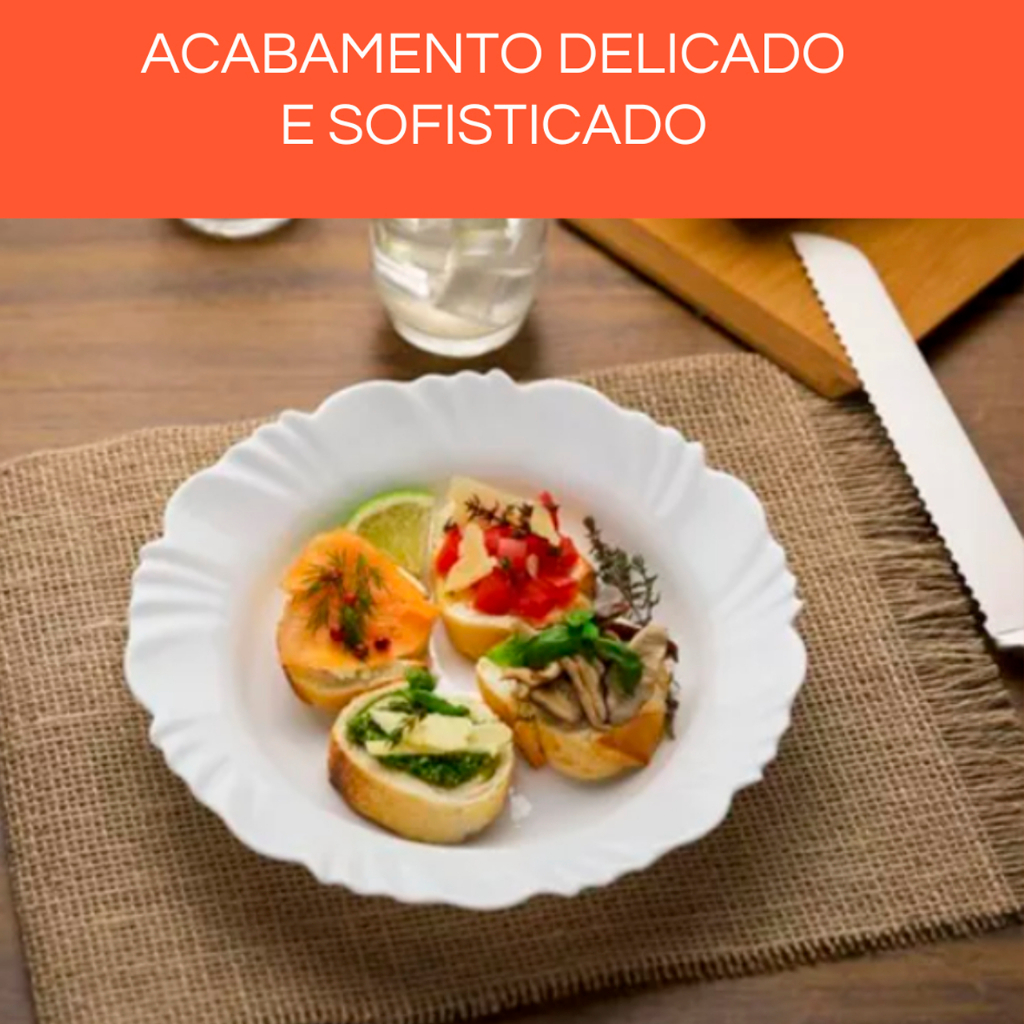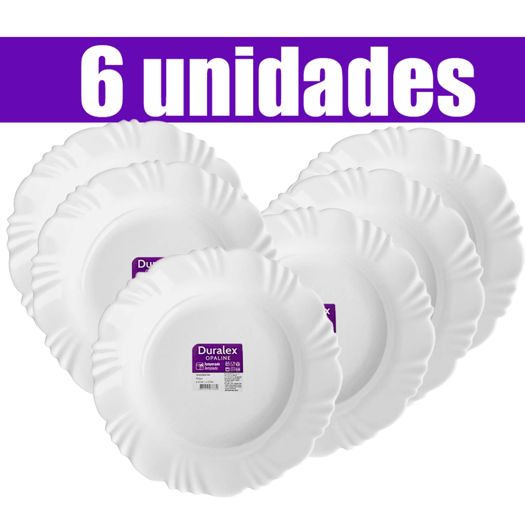 Jogo Kit Duralex 6 Pratos Petala Fundo 23CM Opaline Branco e 6 Copos Zumba 270ml Vidro Brilhante