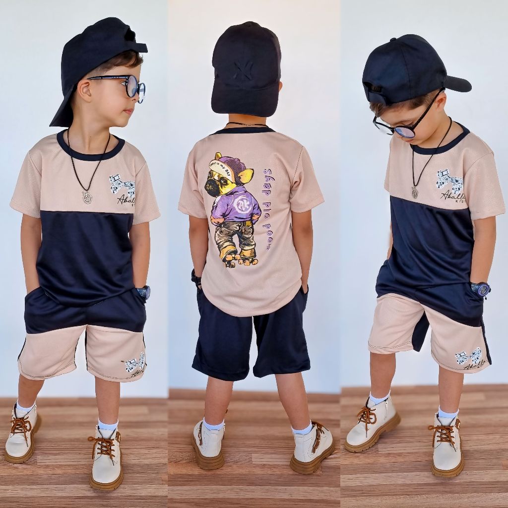 Conjunto Infantil Menino Camiseta + Bermuda Dry Fit Modelo Secagem Rápida