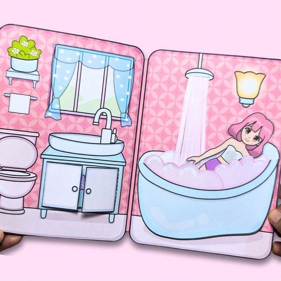 Casa De Cachorrinho Fofa De Desenho Animado Livro Silencioso Infantil Boneca De Papel DIY Rosa Fofo Pacote De material D