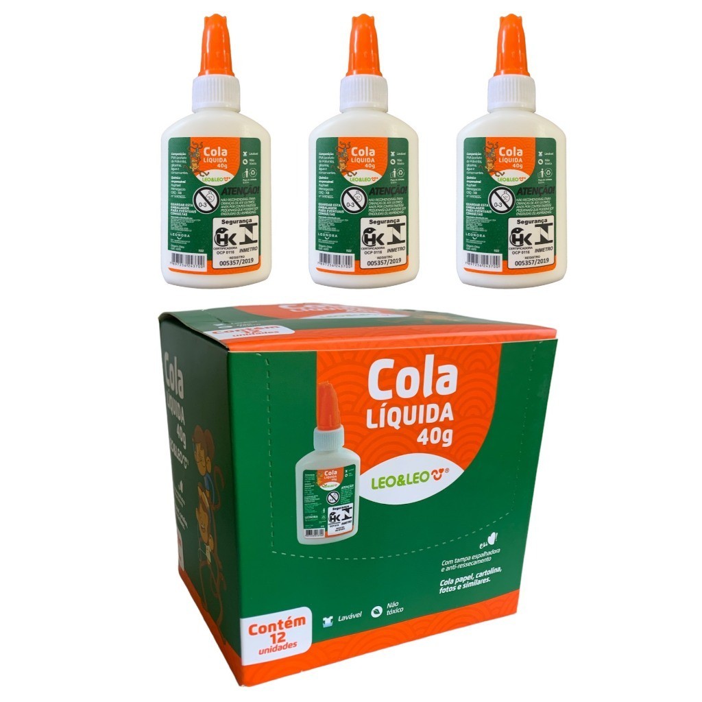 Kit 3 Cola Líquida Branca Escolar 40g com espátula Leo&Leo