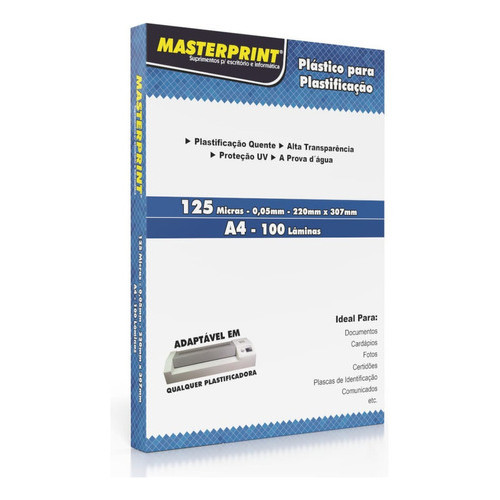 Polaseal Plástico para Plastificação Documentos Fotos 125 Micras 0,05x80x111mm Masterprint
