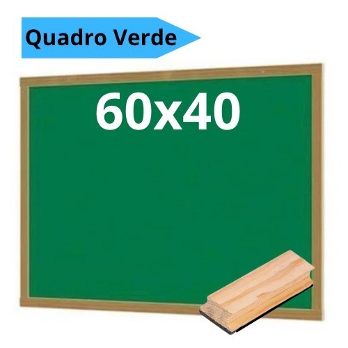 Lousa Quadro Verde Escolar 60x40 + Apagador com Depósito + 10 giz Stalo