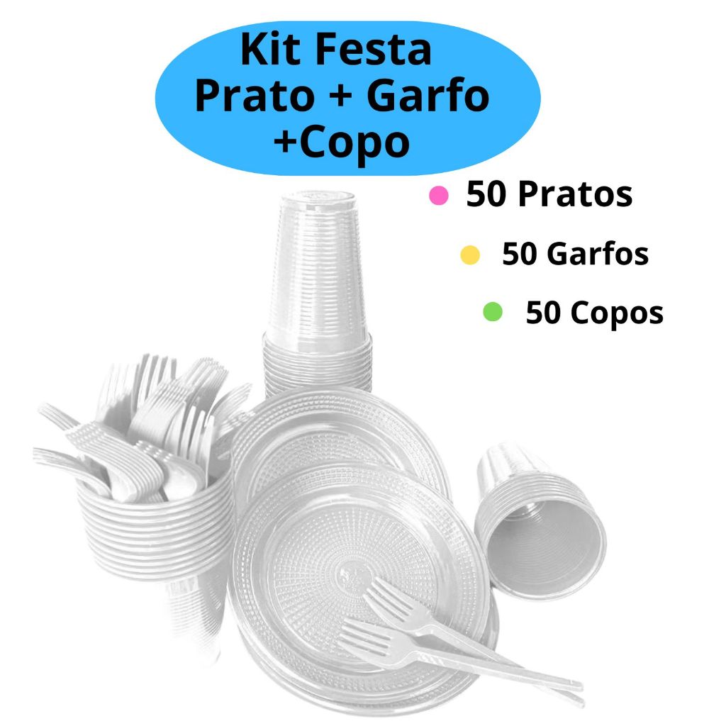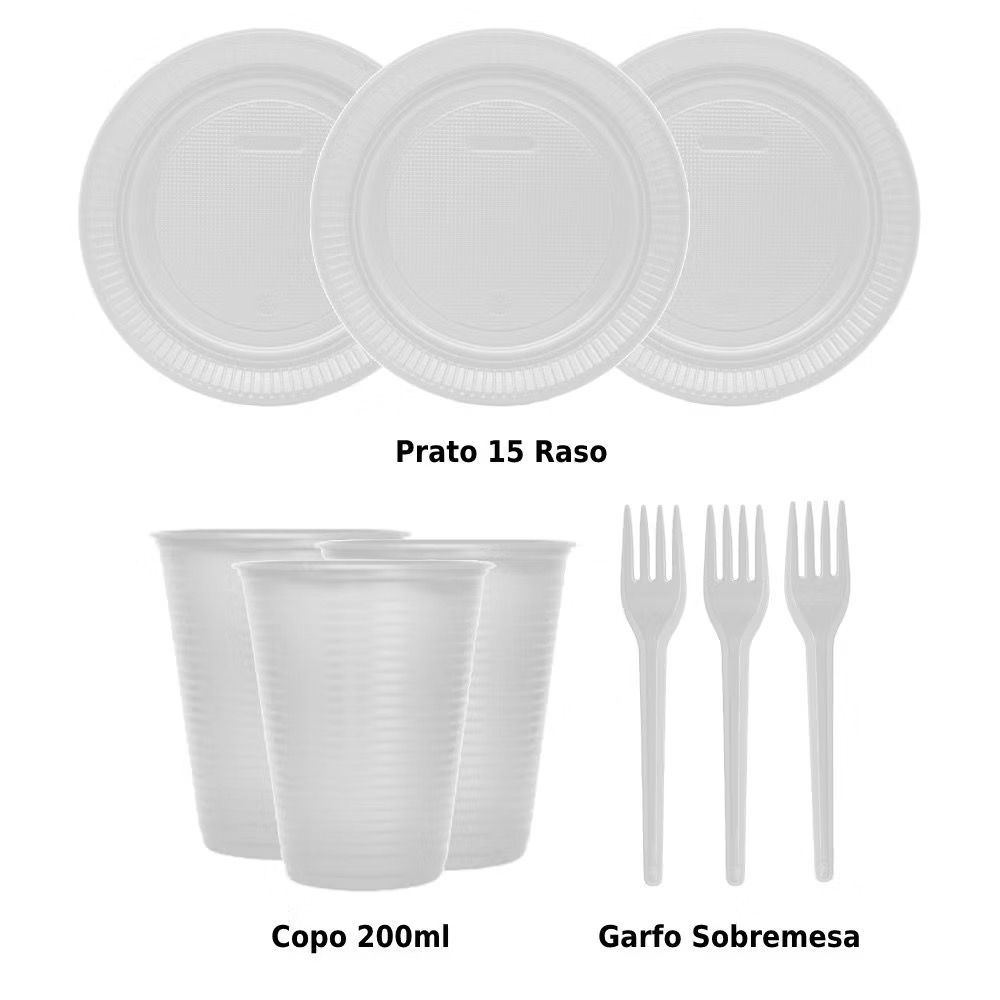 Kit Festa 50/200 Pessoas Economico Branco GARFO + PRATO + COPO Aniversário Decoração Descartável