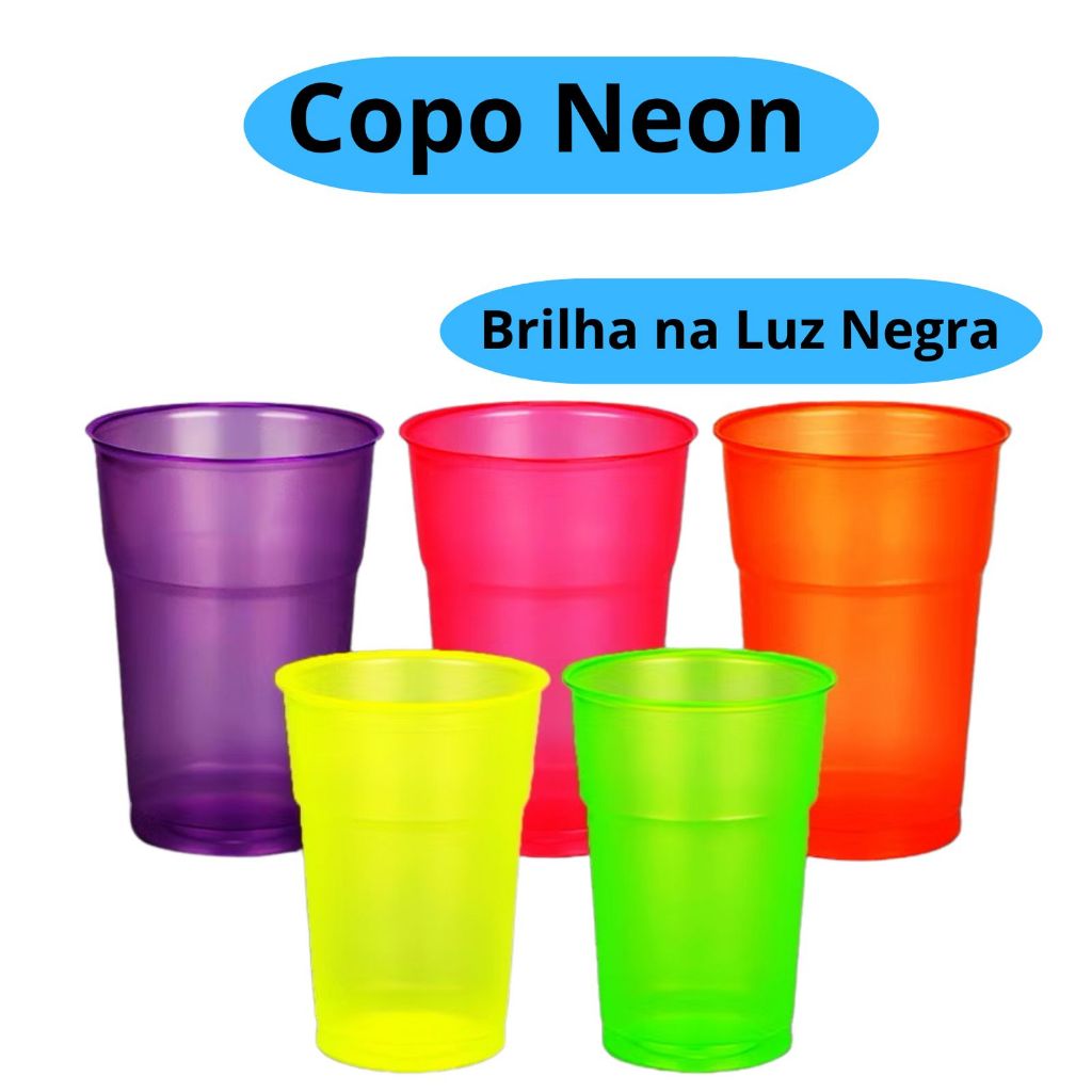 Kit 100 Copos Neon 300ml Premium Descartável Para Drink Bebida Festa Aniversário