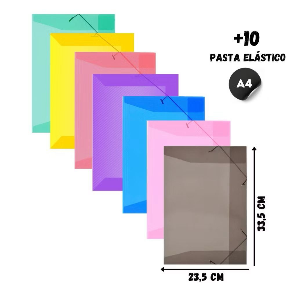 Kit com até 20 Pastas com Elástico Aba Grande A4 Ofício 335x235mm Modelo Fino ACP