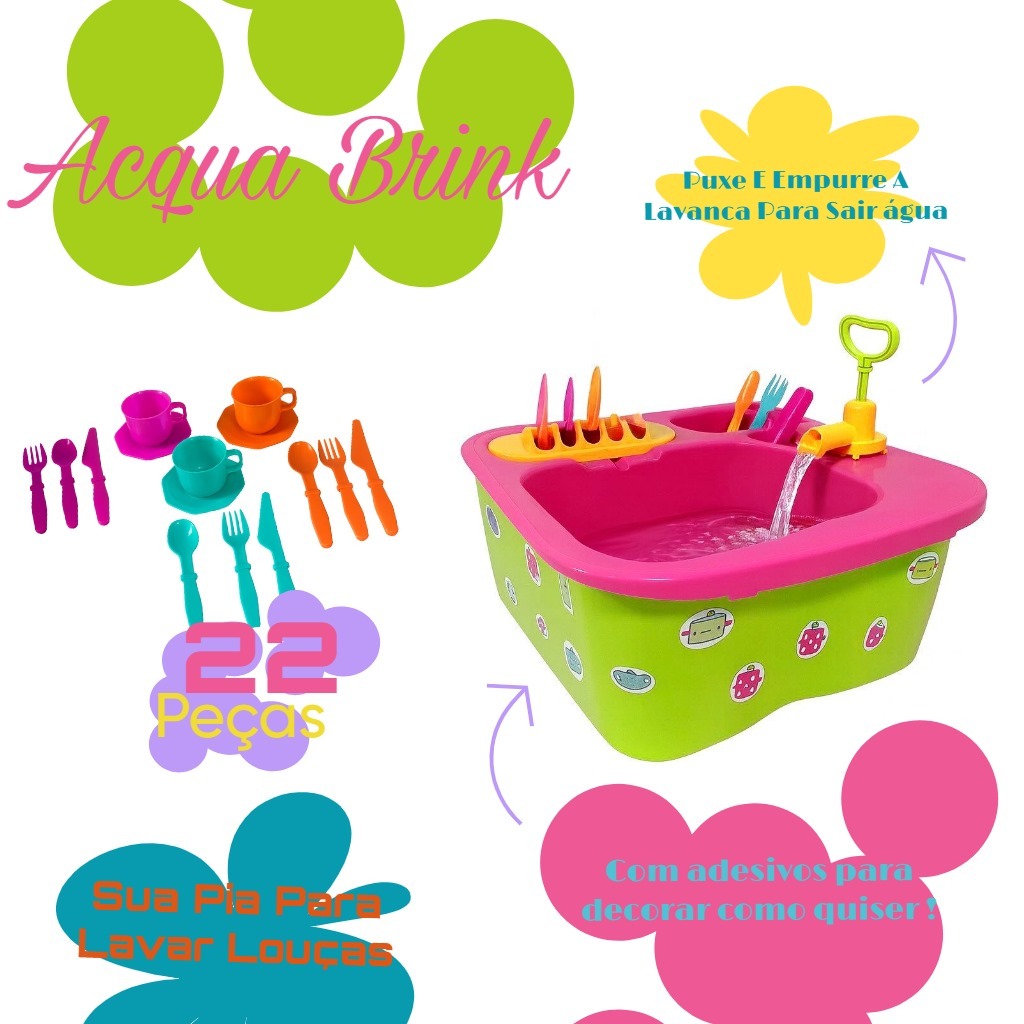 Pia Infantil Acqua Brink com Torneira que Sai Água – 22 Peças