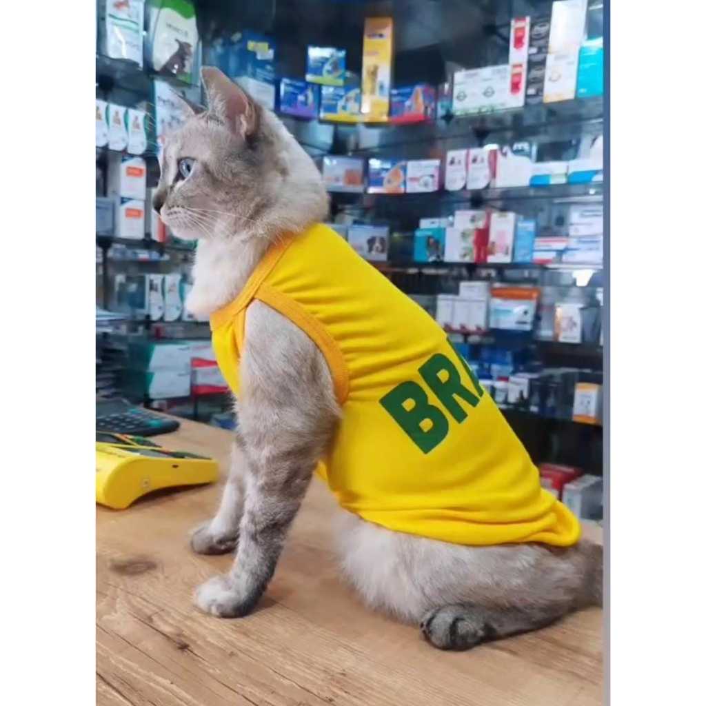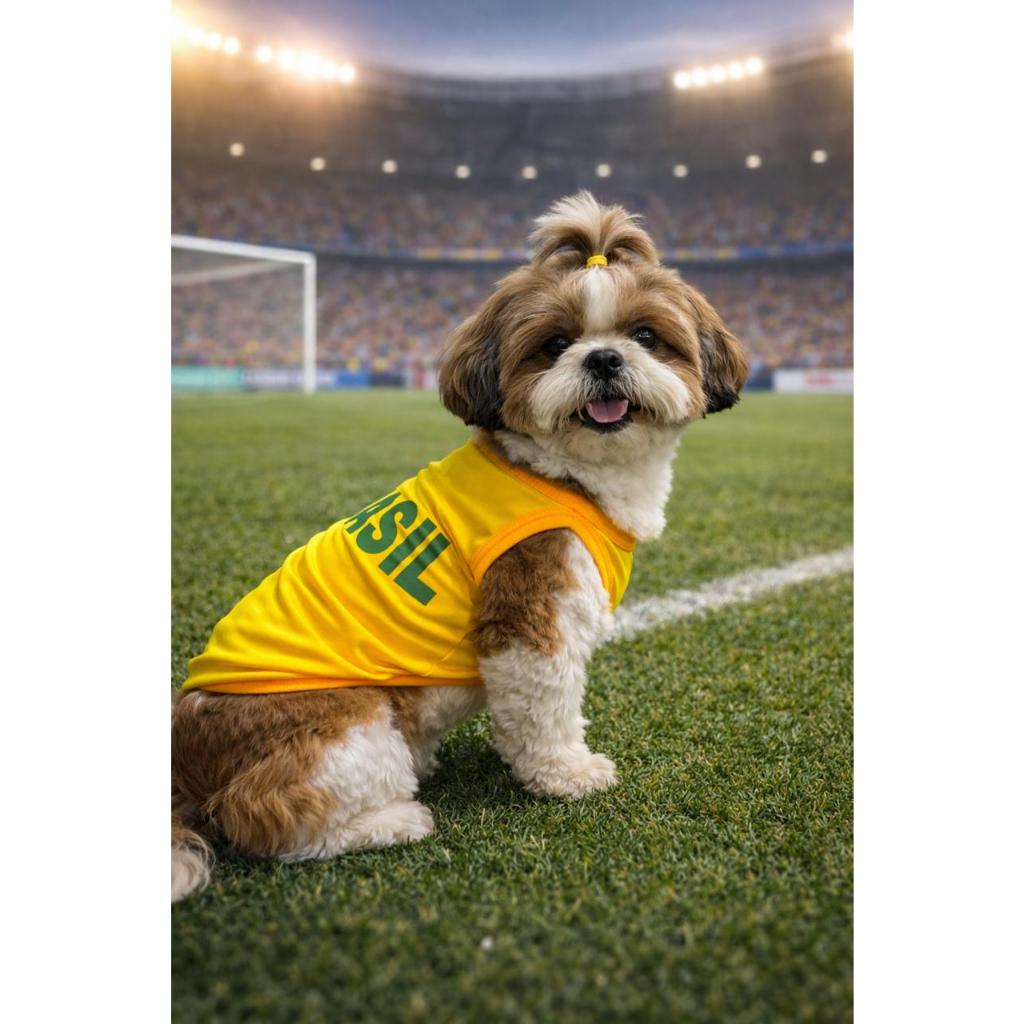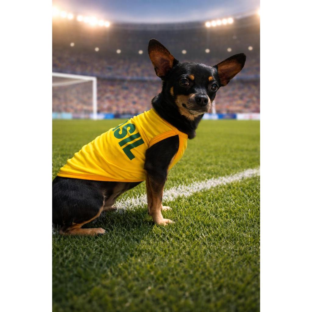 Roupa Pet Brasil Copa 2026 Suéter Verão para Cachorro e Gato Fantasia Copa Estampas Variadas