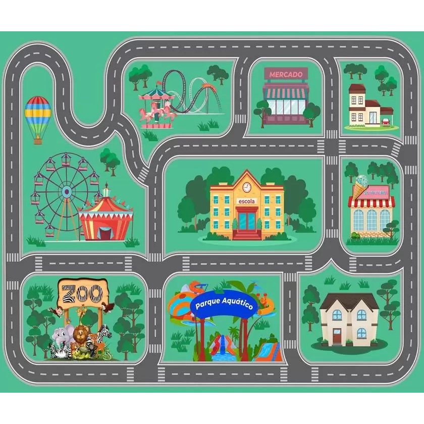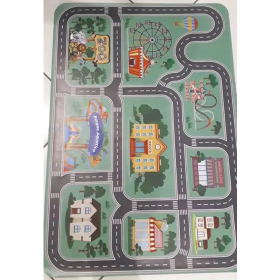 Tapete de Pista Ilustrado verde - PROMOÇÃO - Carrinho Corrida 70x100cm
