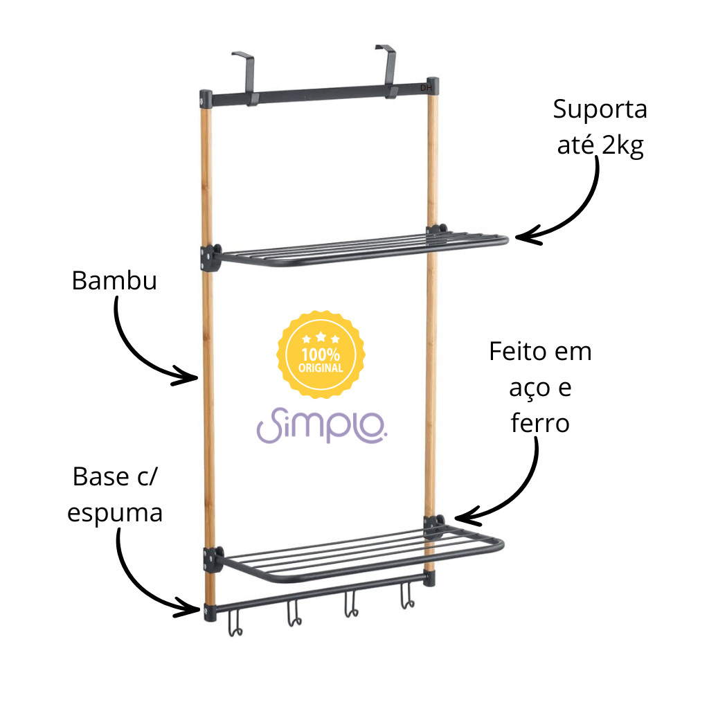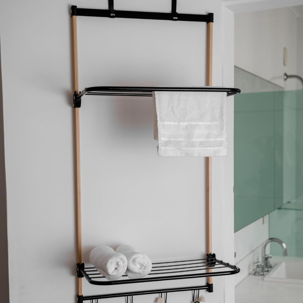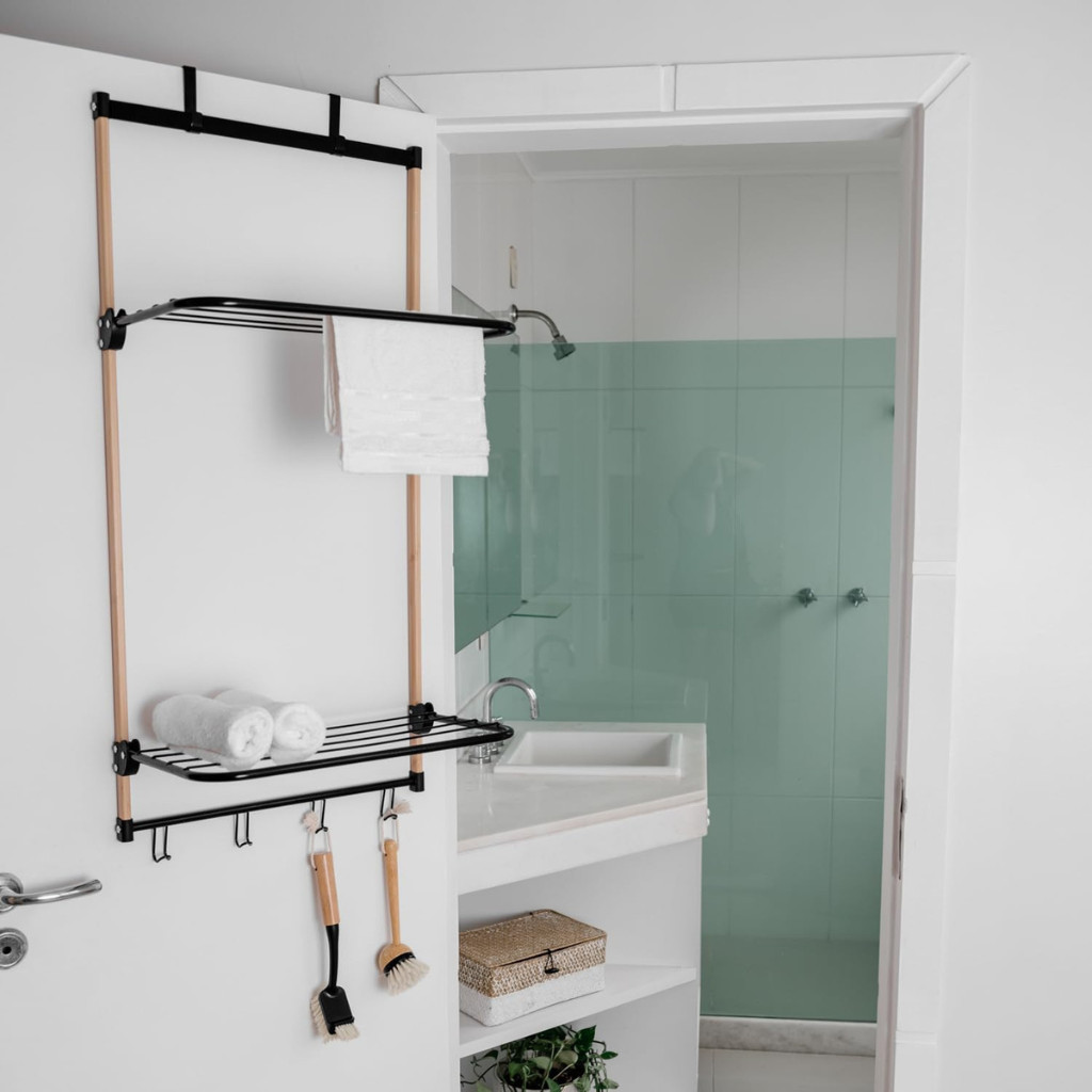 Varal de Porta Bambu com Hastes em Metal Preto - Simplo