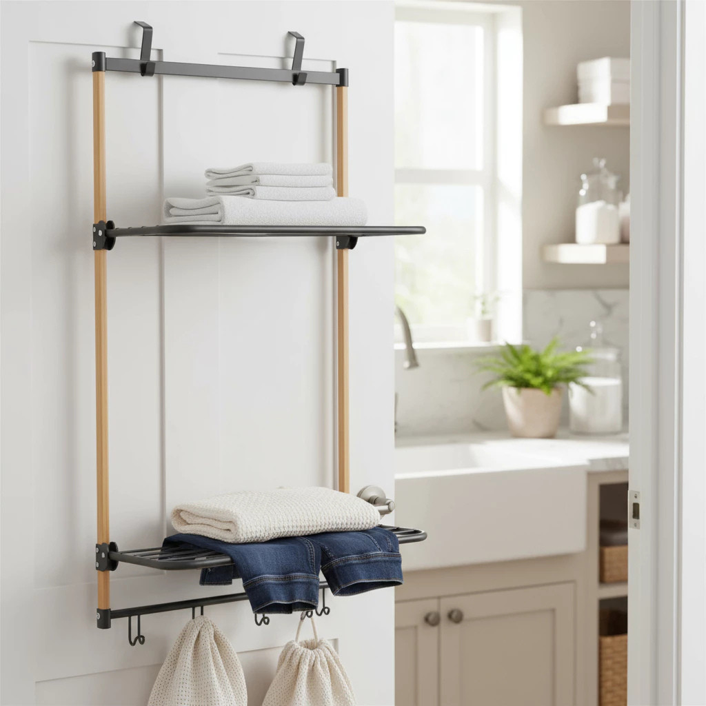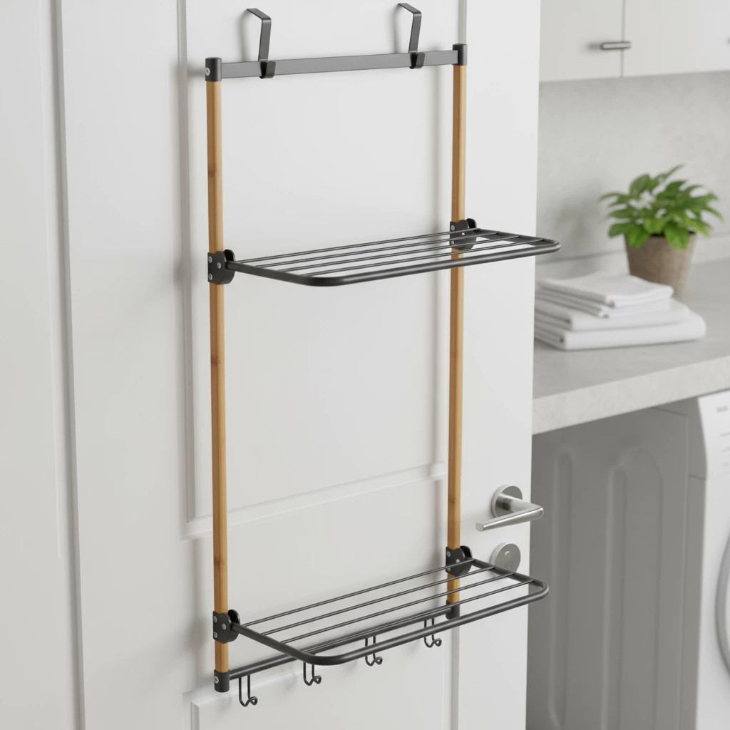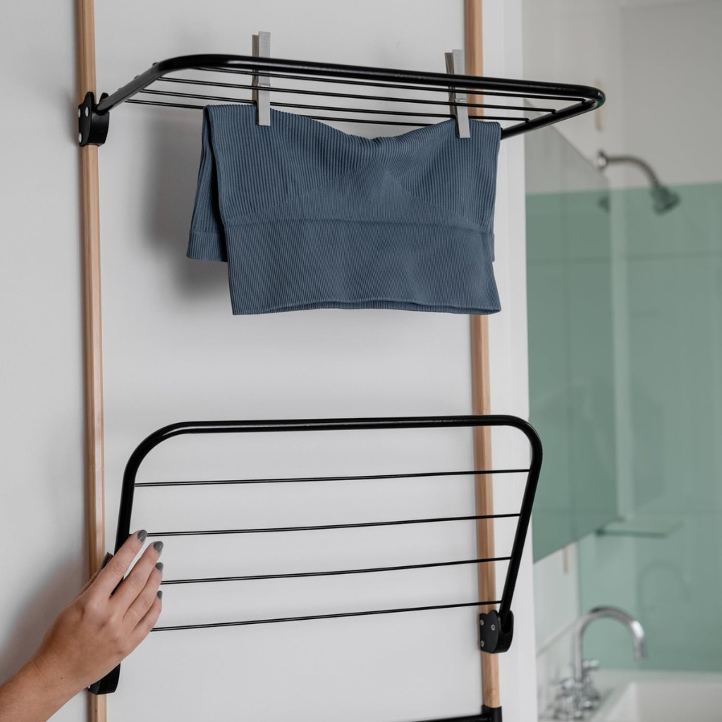 Varal de Porta Bambu com Hastes em Metal Preto - Simplo