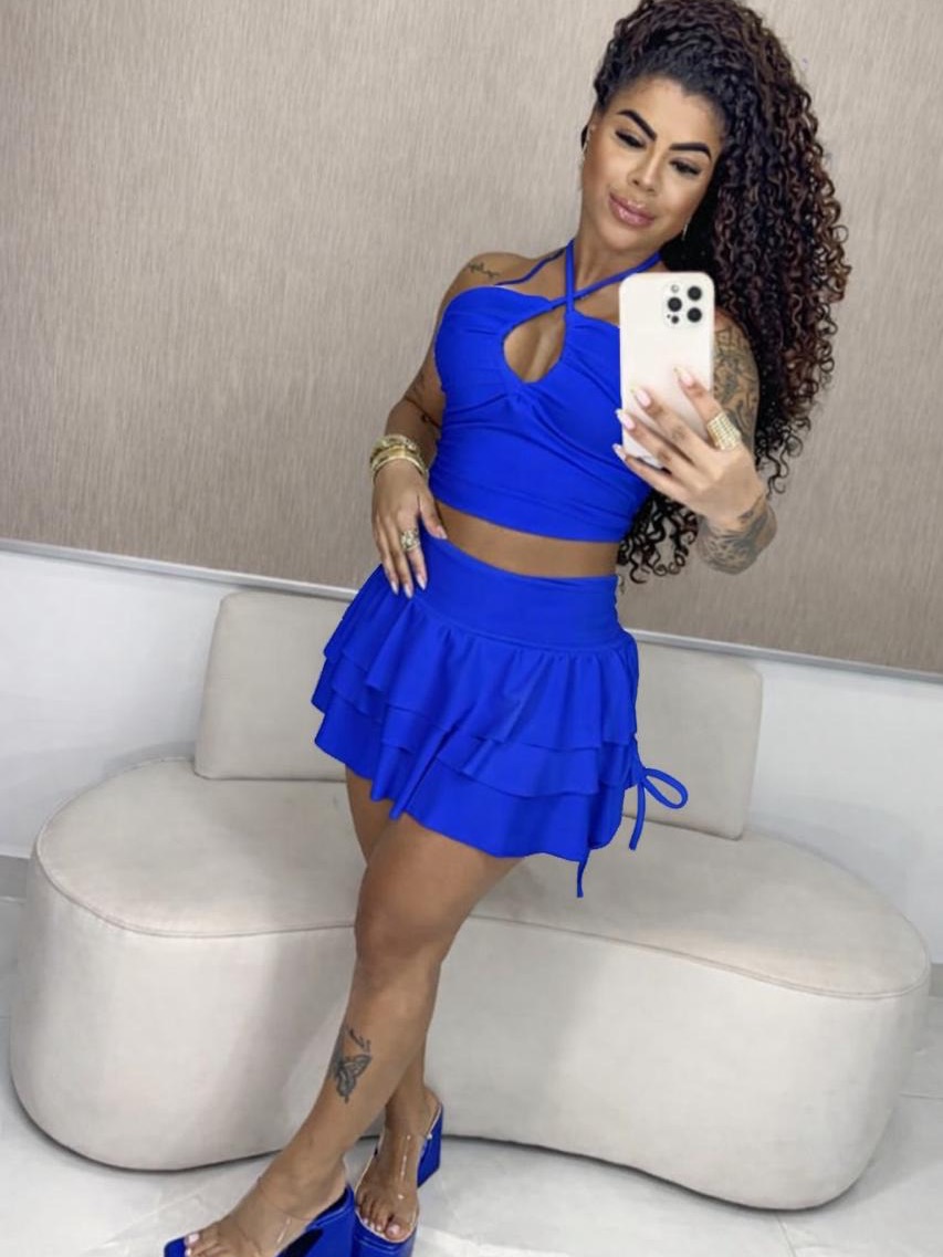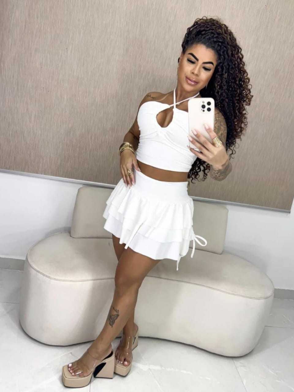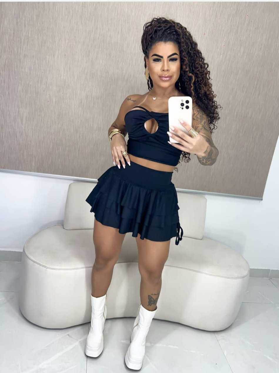 Conjunto Feminino Shorts Saia Elegante Top Verão Gringa Jovem Multiformas Blogueira Amarração Mini