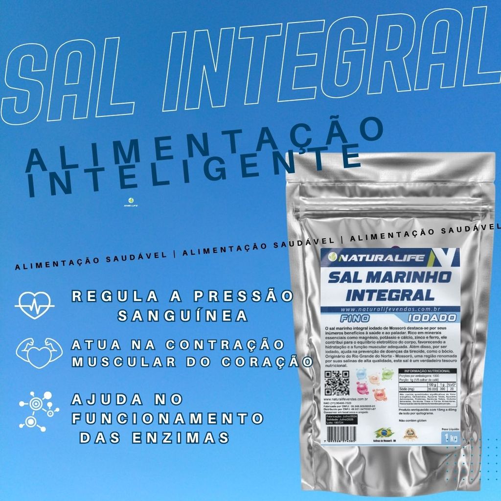 Sal Integral Fino Iodado 2kg 100% Integral de Mossoro