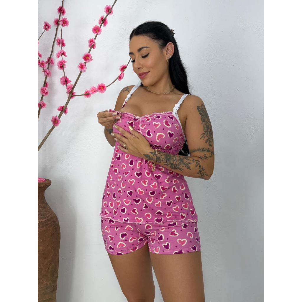 Baby Doll Amamentação Gestante Confortável Lactante Pijama Feminino