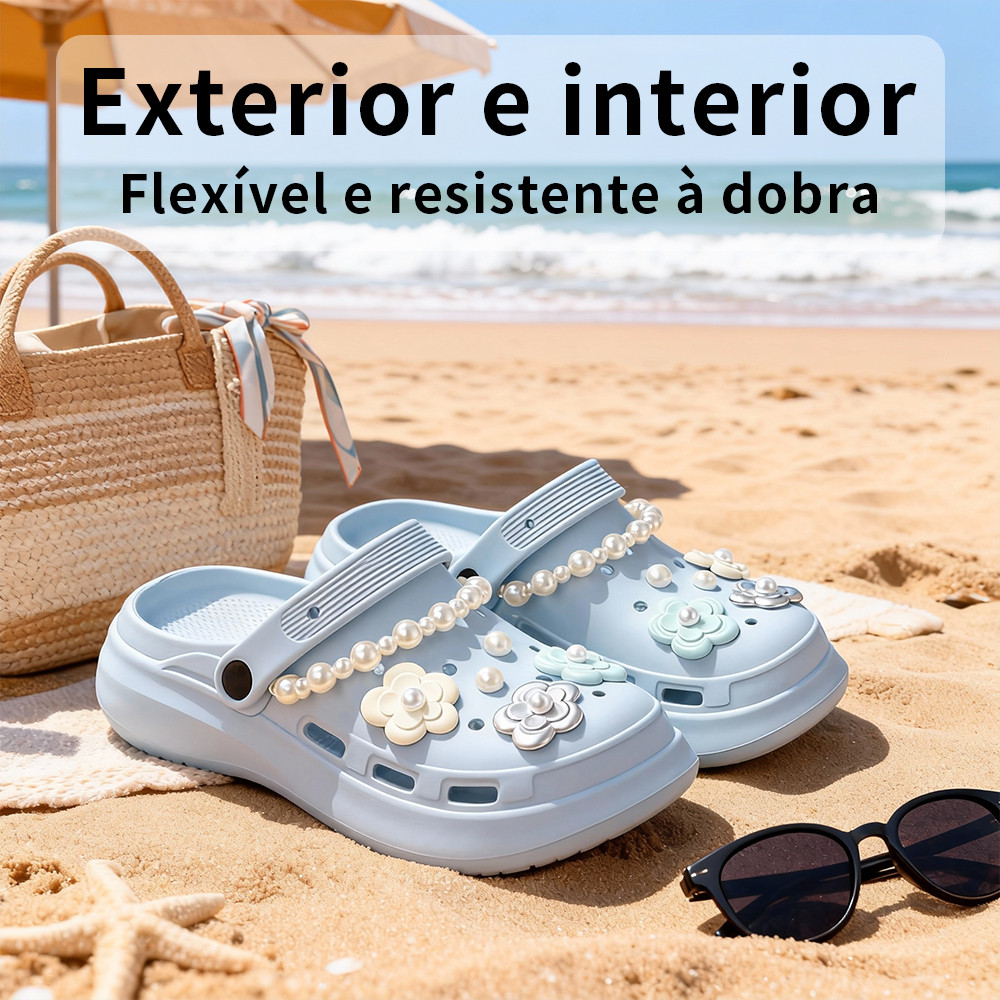 Babuche Plataforma Feminina Leve Macia Confortavel Anti-deslizamento com Bottons Removíveis Ideal para Passeios e Lazer