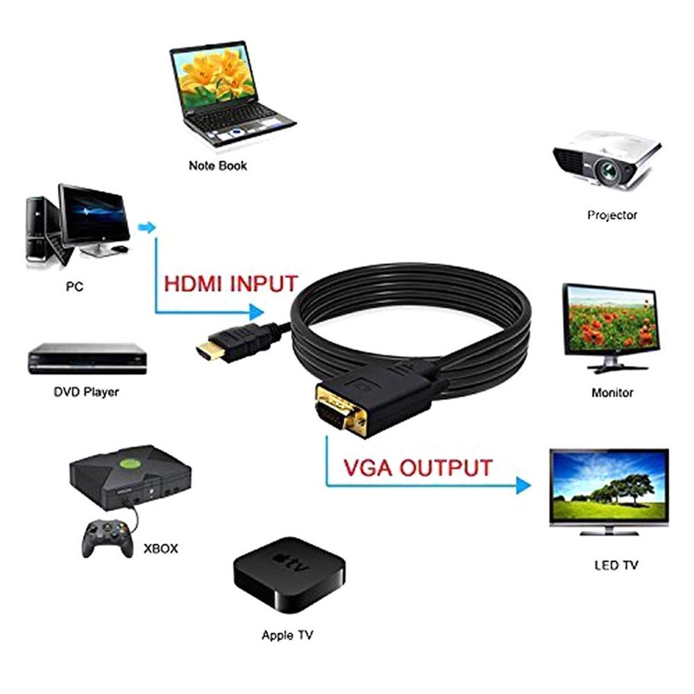 Cabo Conversor Hdmi Macho Para Vga Macho 1.80 Metros