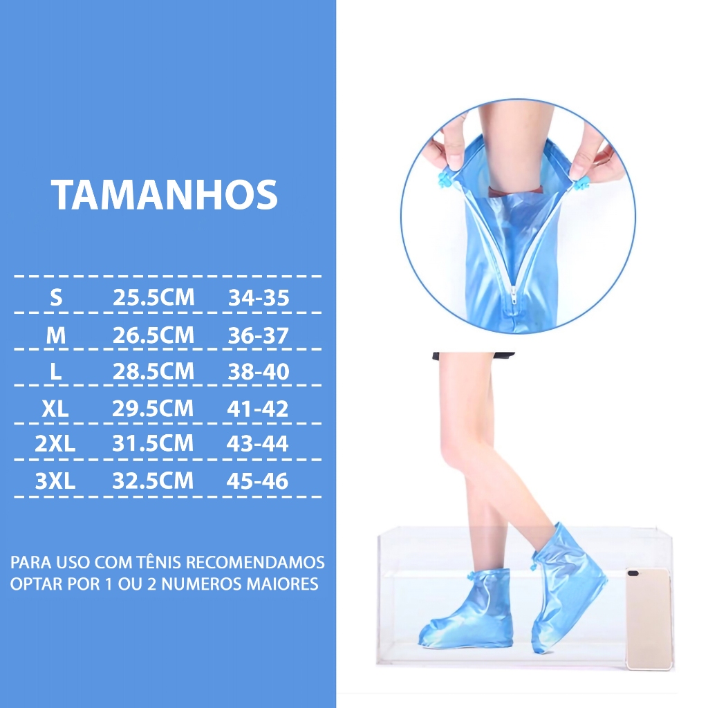 Capa de Chuva para Sapato Reutilizável Cano Alto Impermeável PVC - A699