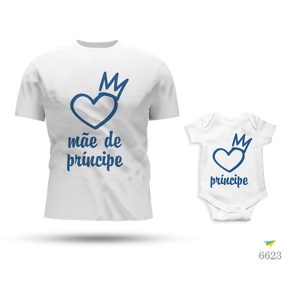 Kit Tal Mãe Tal Filho Body e Camiseta Tema Principe e Mãe de Principe