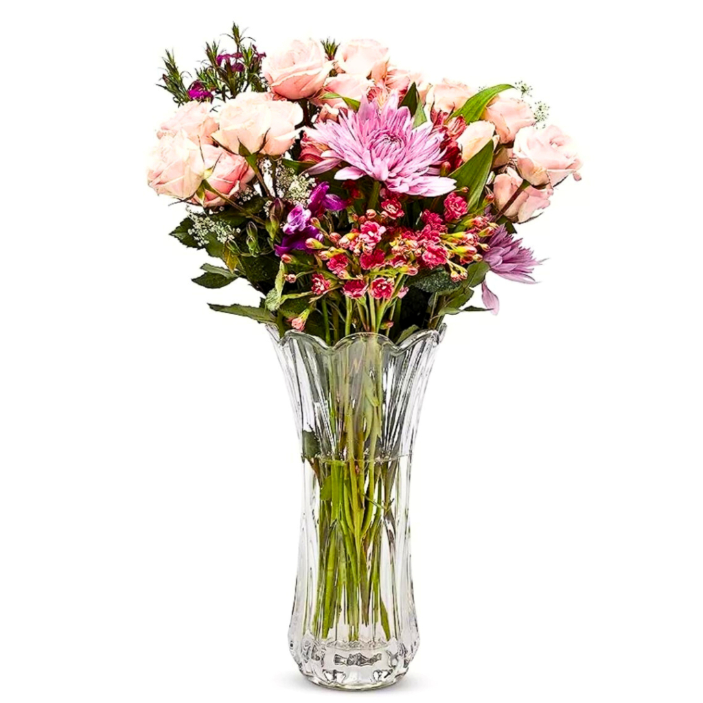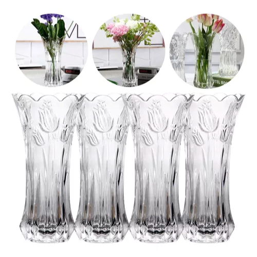 Vaso de Vidro Lapidado 23cm Decoração Sala Festa Plantas Flores