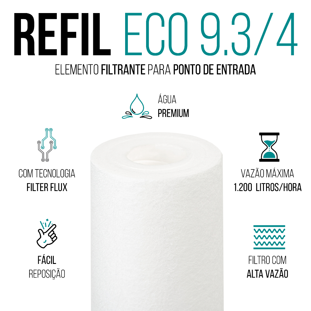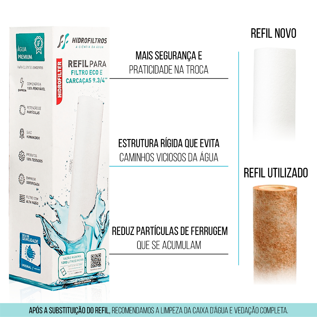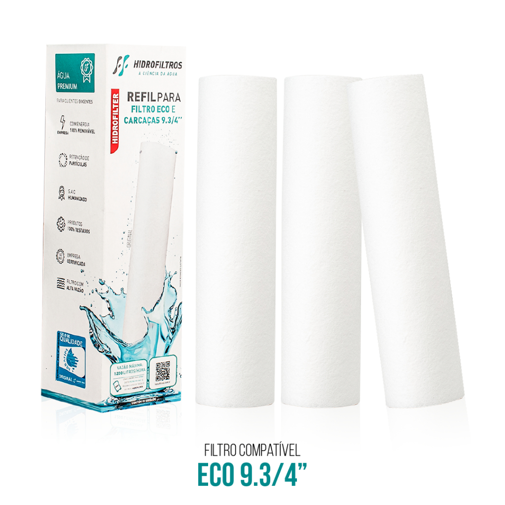 Kit 1/2/3 Filtro para Caixa dÁgua Cavalete Refil Polipropileno Eco 9.3/4 Proteção Eficiência da Água