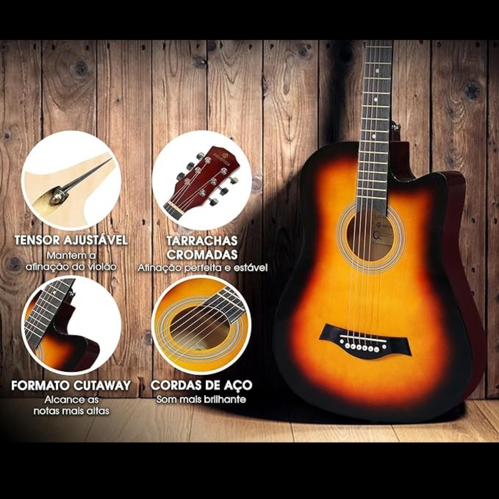 Violão Acústico 38 Polegadas 6 Cordas - Leve, Madeira, Várias Cores Iniciantes Aulas Ensaio Banda