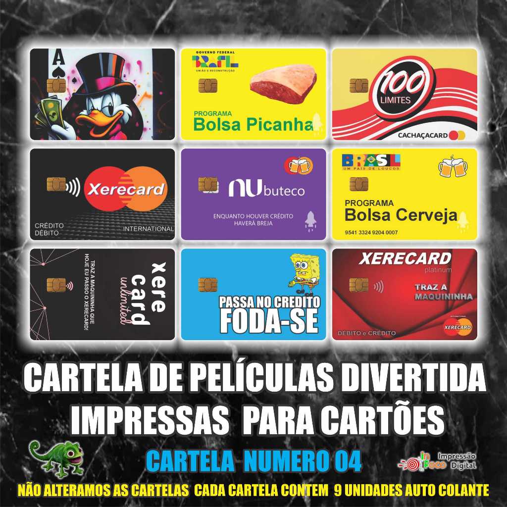 Adesivo de Cartão de Banco -9 Unidades- Débito/Crédito - Skin Card