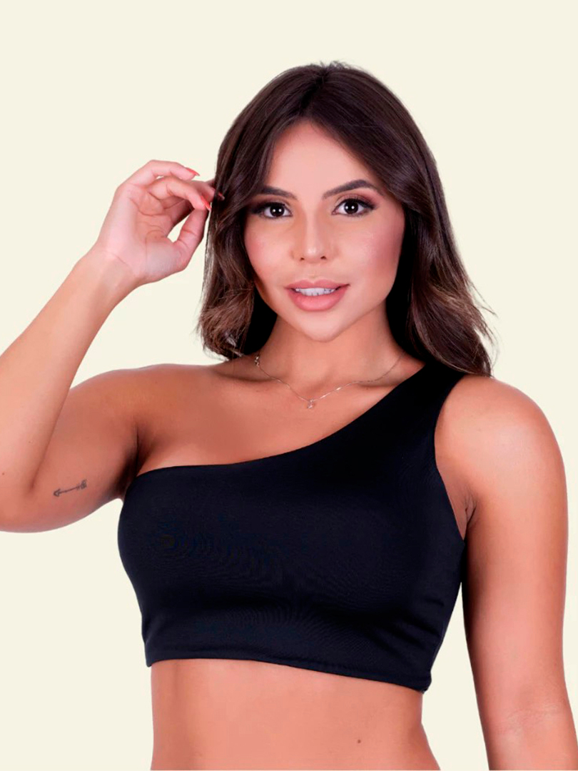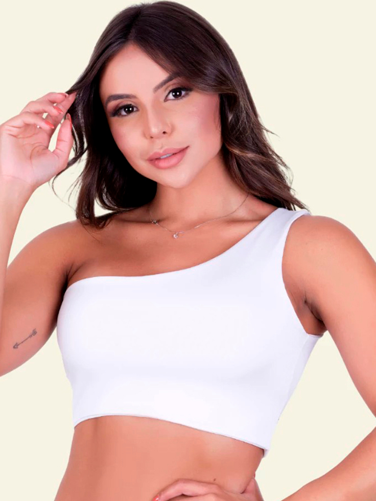 Top Cropped Regata Um Ombro Só Blusa Casual Sem Bojo Moda Feminina