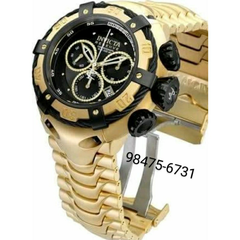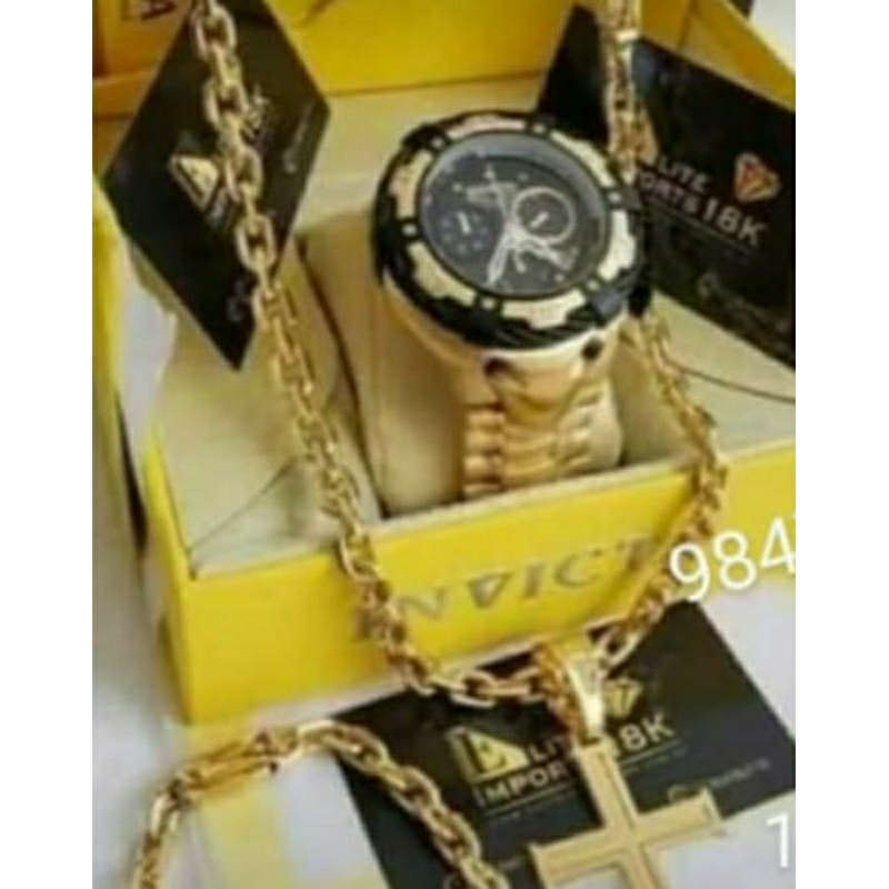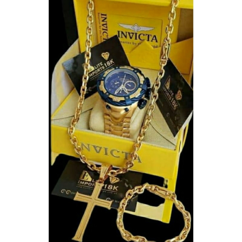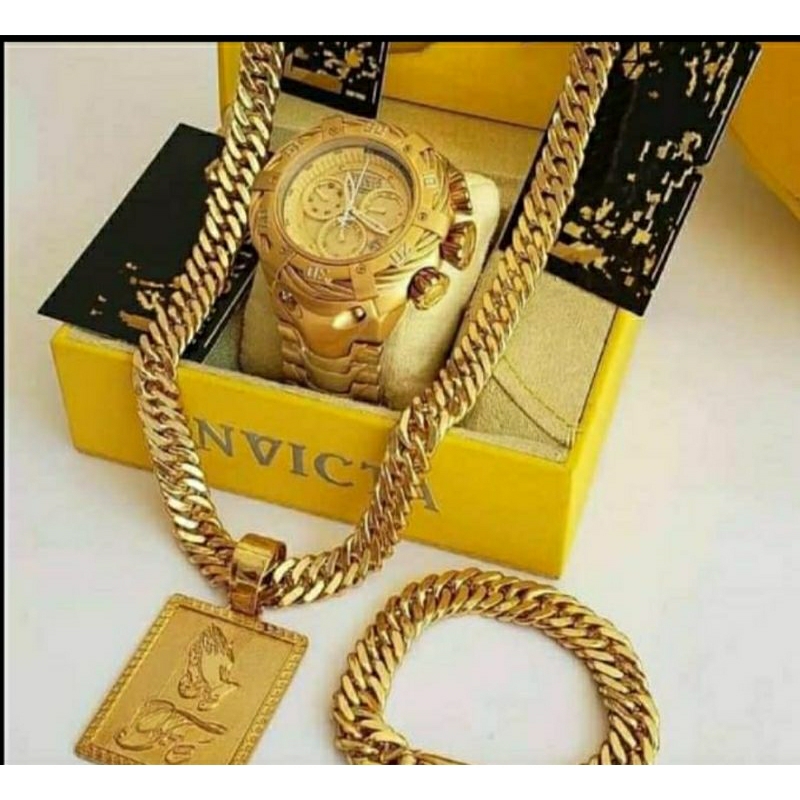 Relógio masculino thunderbolt dourado banhado a ouro+conjunto de correntes pingente e pulseira as banhadas