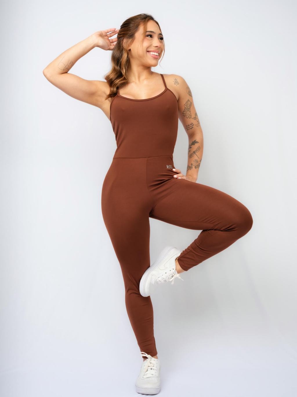 Kit Macacão Costa Nua Longo + Conjunto Fitness Top Alça Calça Legging Sem Transparência Inverno