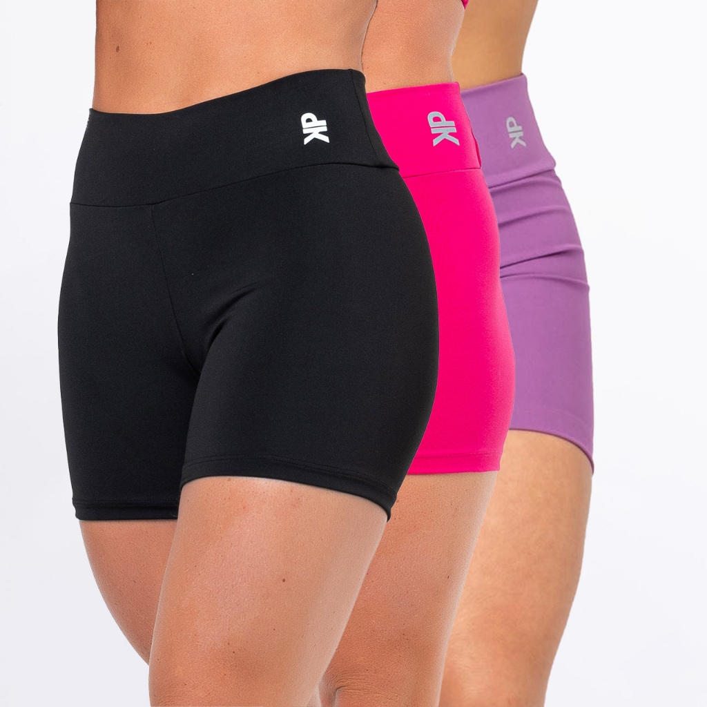 Kit 3 Short Fitness Feminino Meia Coxa Cintura Alta Zero Transparência Academia Básico