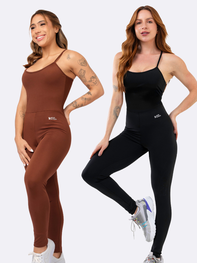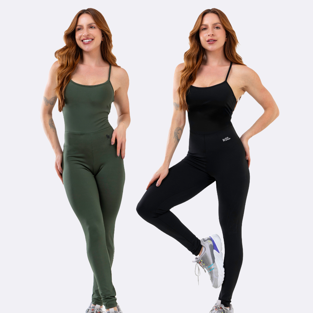 Kit 2 Macacão Fitness Feminino Blackout Alcinha Slim Zero Transparência Longo Crossfit Inverno