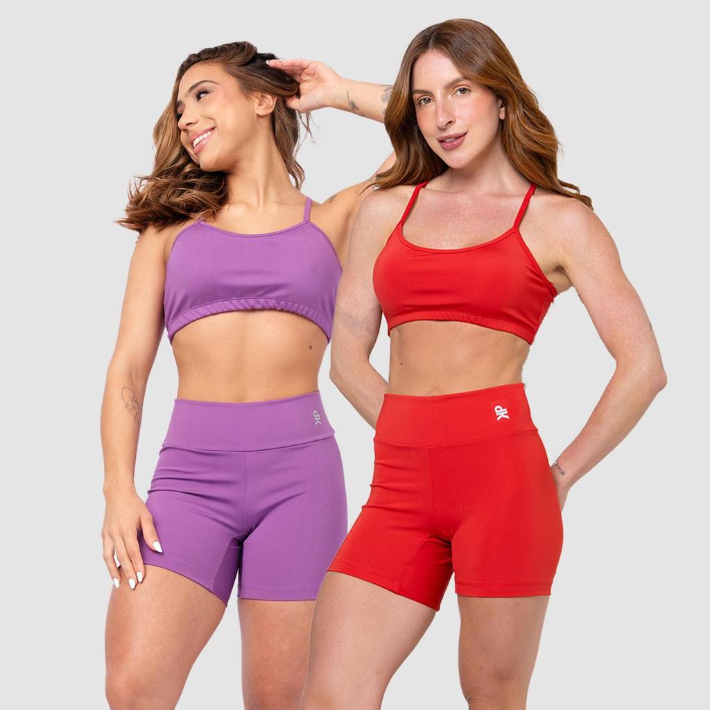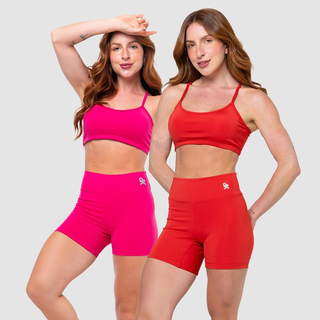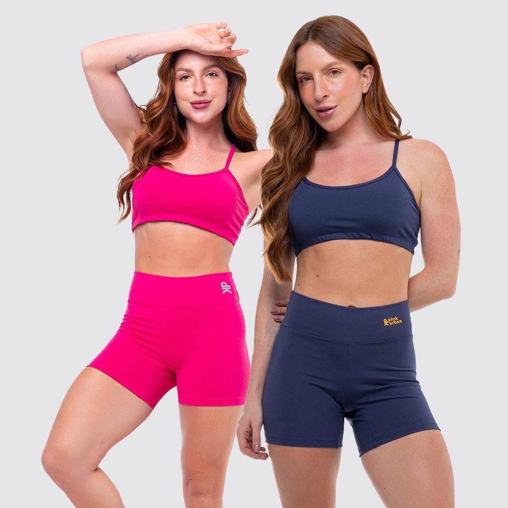 Kit 2 Conjunto Fitness Feminino Top Alça Short Cós Alto Meia Coxa Blackout Zero Transparência