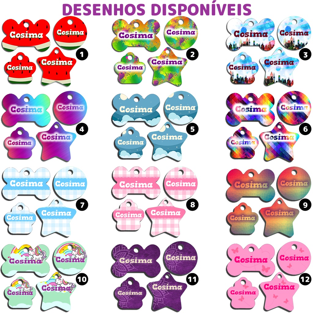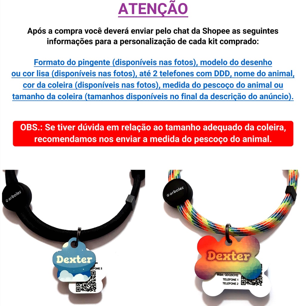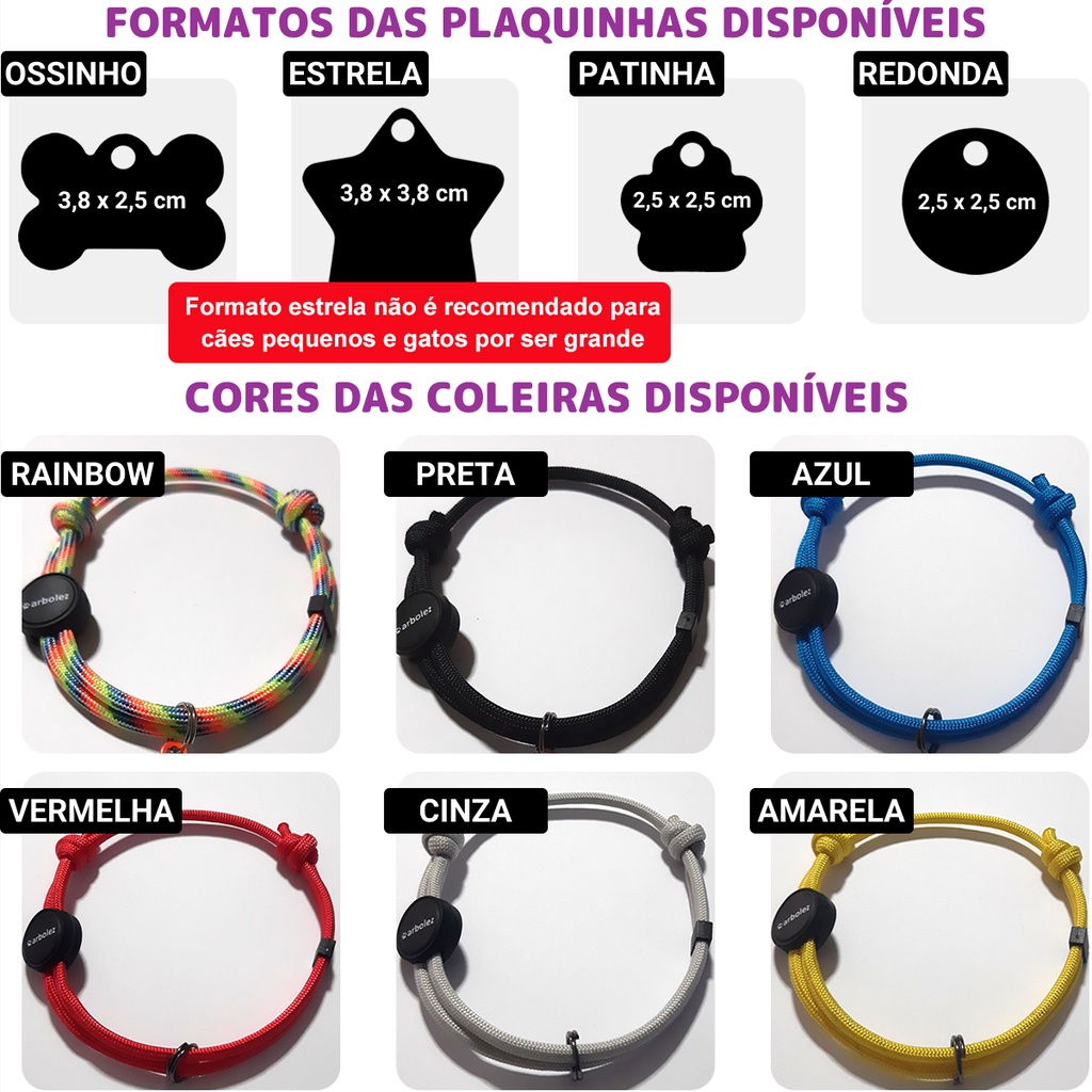 Coleira Com Placa De Identificação Pet Cachorro Gato Personalizada