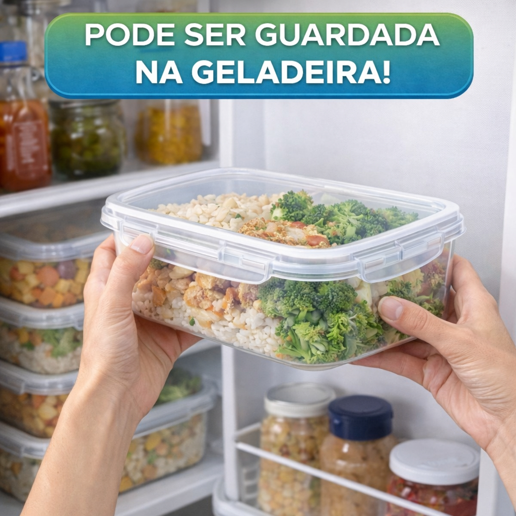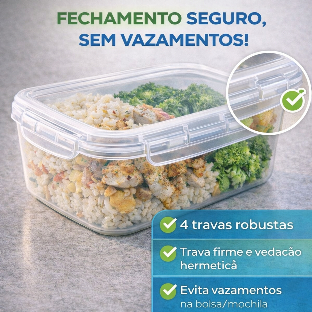 Kit 10 Potes Marmita Fit 400ML Retangular Com Tampa 4 Travas Jogo de Potes Livres de BPA