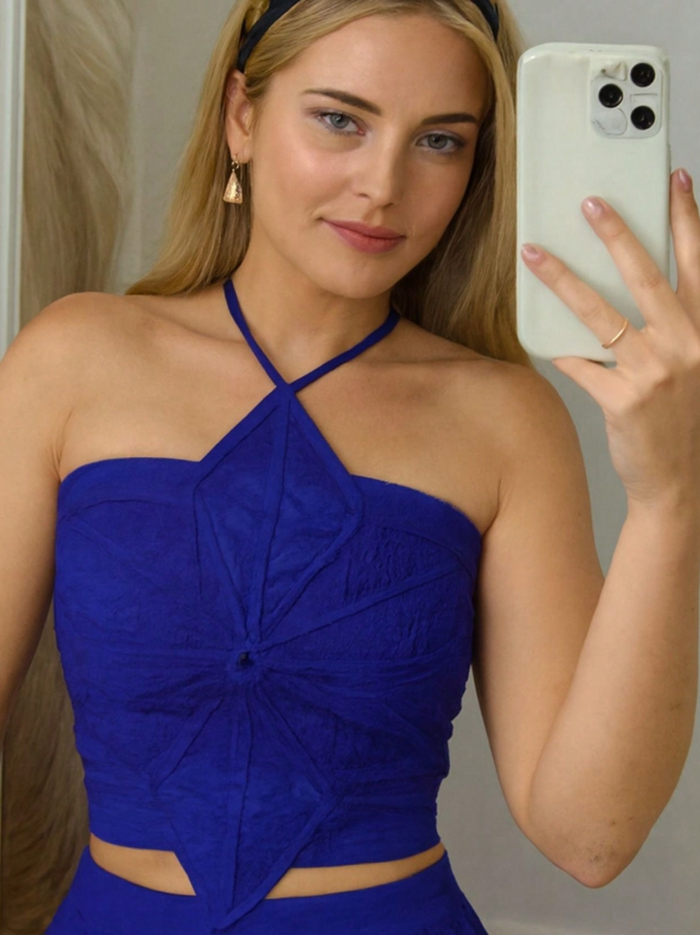 Cropped Top Feminino Tricot Flor Amarração Alcinha Frente Única Moda Blogueira Verão