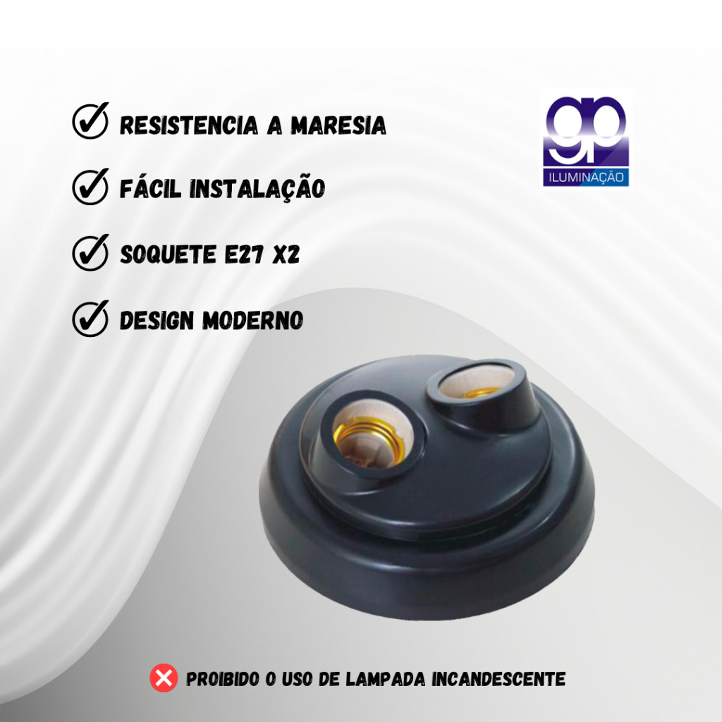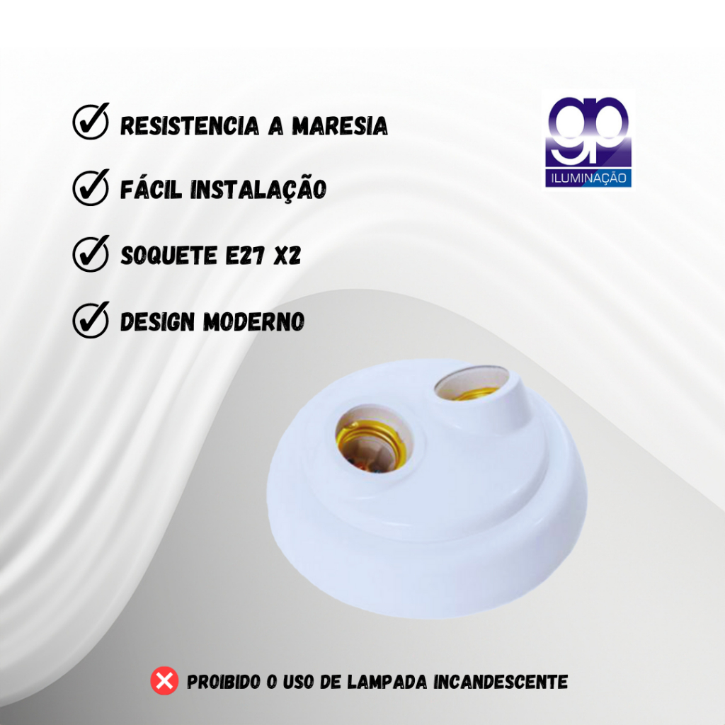 LUMINARIA PLAFON DUPLO SOBREPOR - 2 LAMPADAS - AREA INTERNA - TETO - SOQUETE PORCELANA E27 GAZPLAST